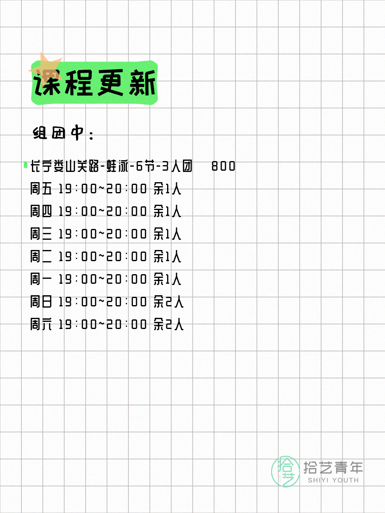 ⭐ 仰泳-长宁江苏路-6节-3人团 💰800