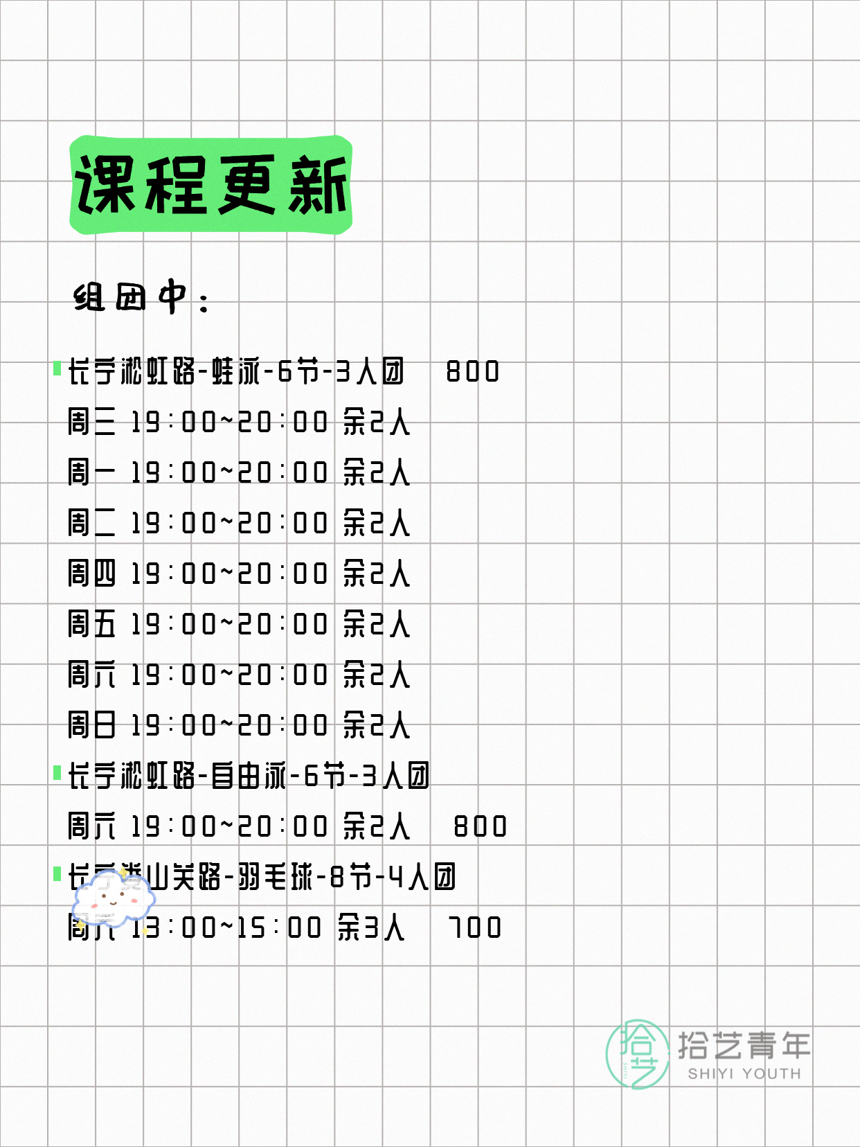 ⭐ 仰泳-长宁淞虹路-6节-3人团 💰800