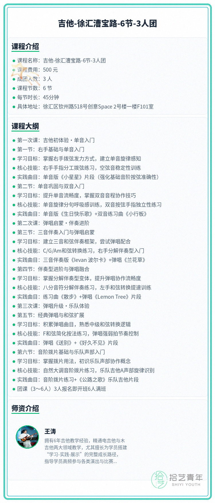 #上海夜校 #徐汇夜校 #吉他课程 #夜校拼团 #上海线下课