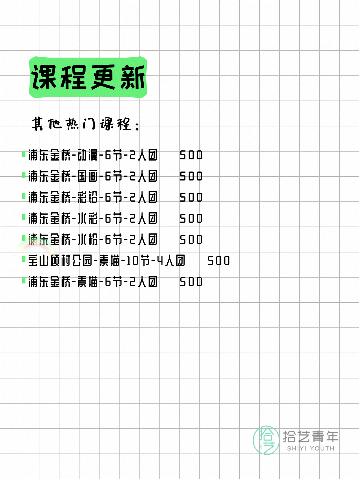 💡 提示:以上课程信息来自拾艺青年小程序,课程可能随报名动态变化,具体以小程序实时信息为准。
