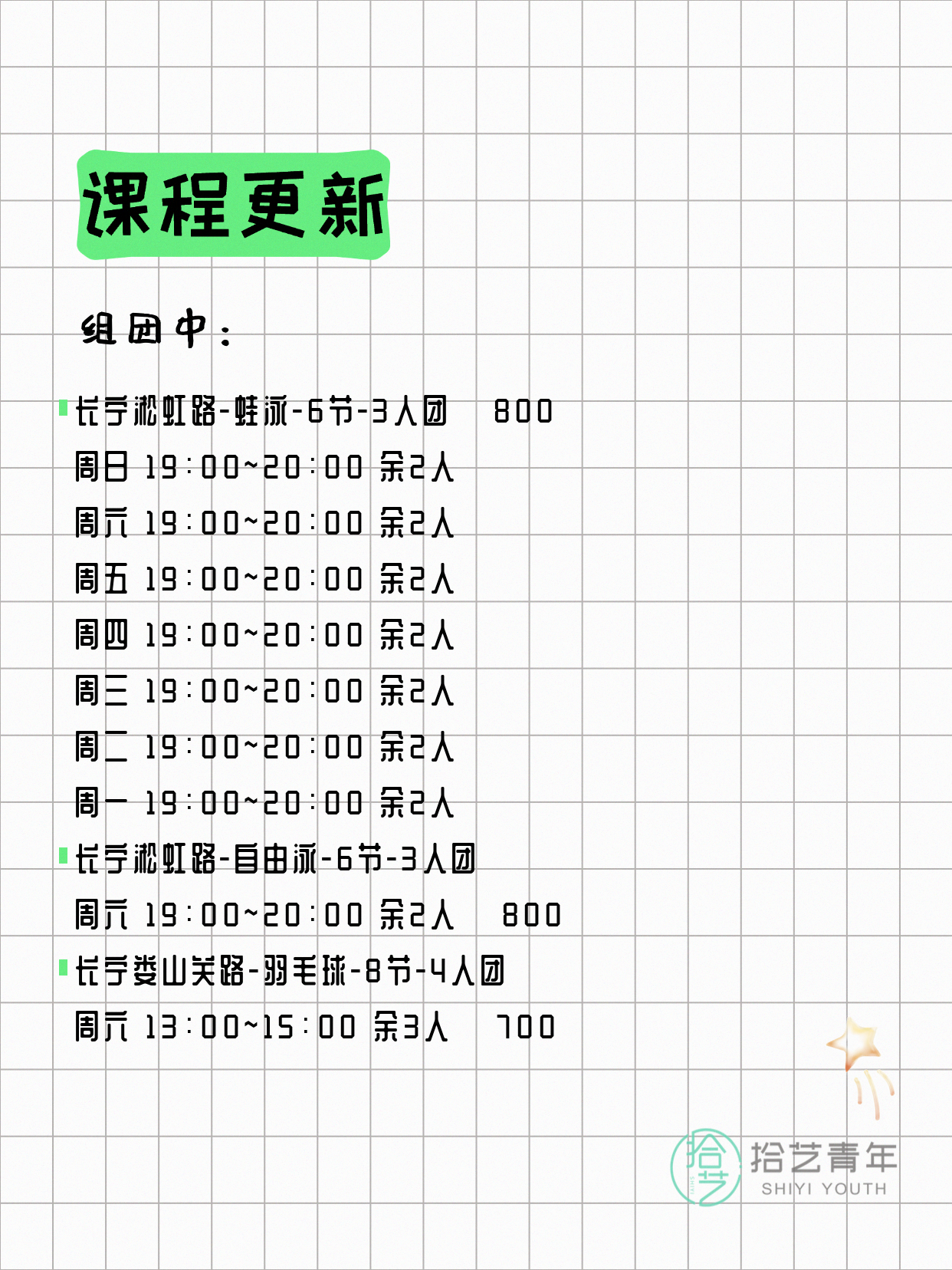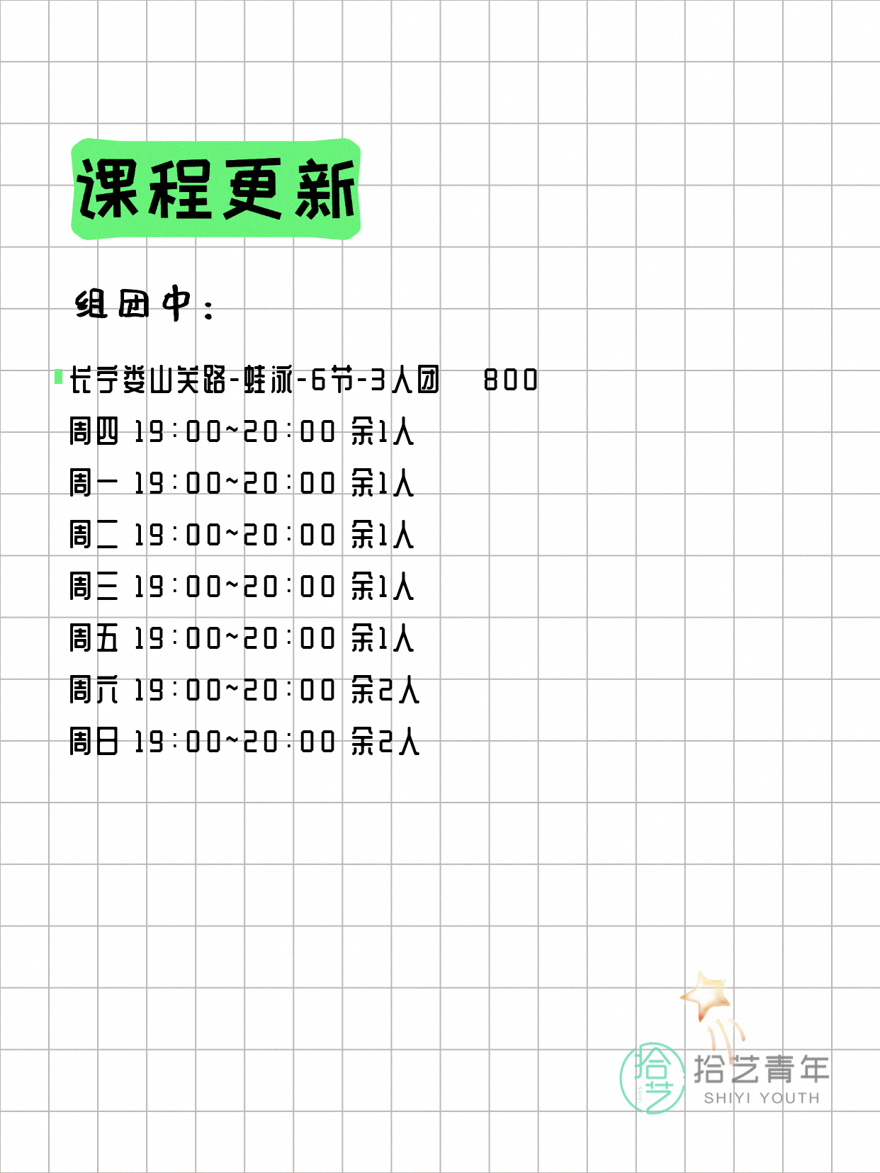 ⭐ 仰泳-长宁淞虹路-6节-3人团 💰800