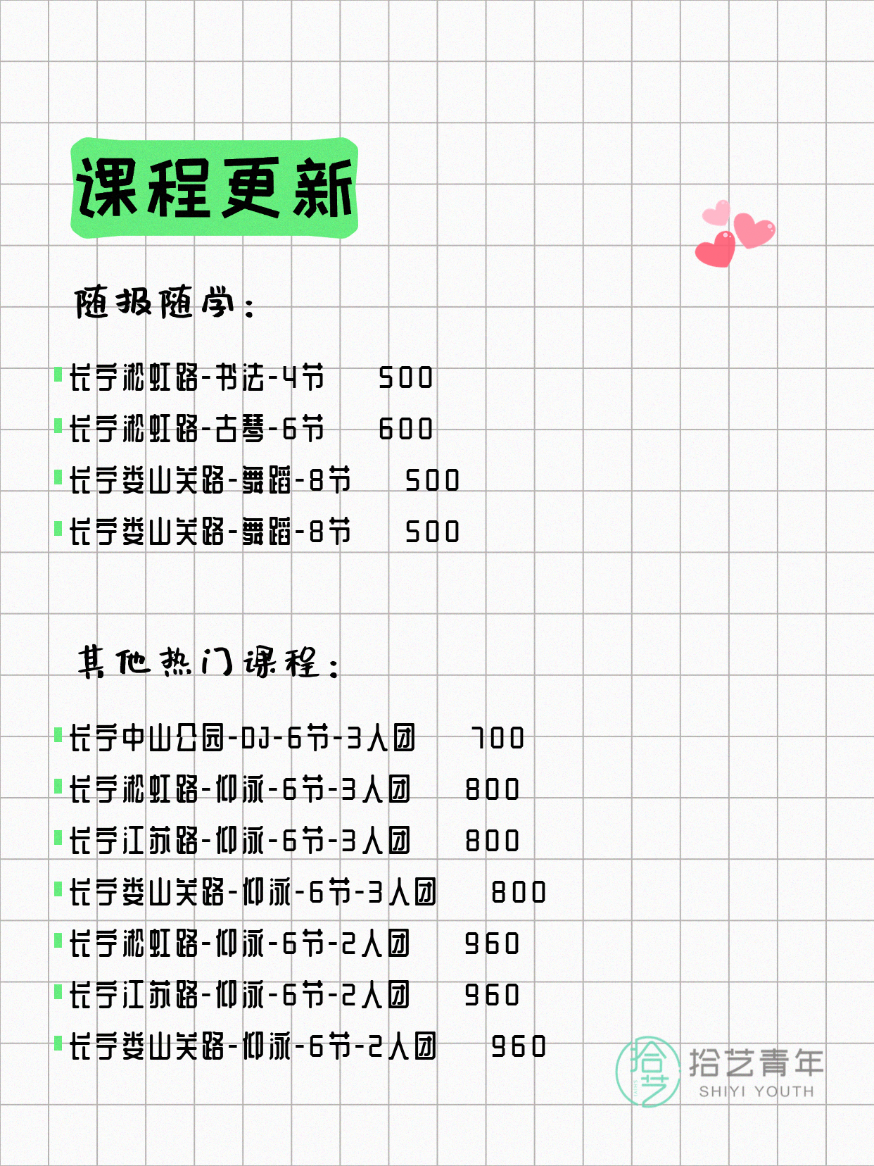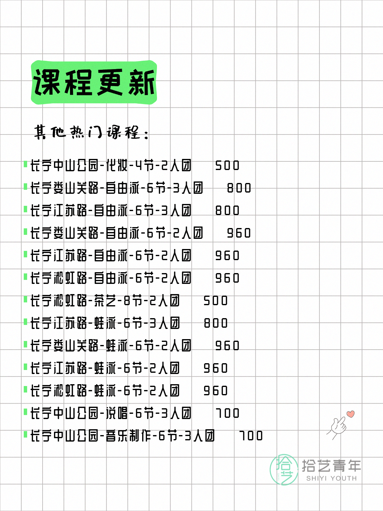 💡 提示:以上课程信息来自拾艺青年小程序,课程可能随报名动态变化,具体以小程序实时信息为准。