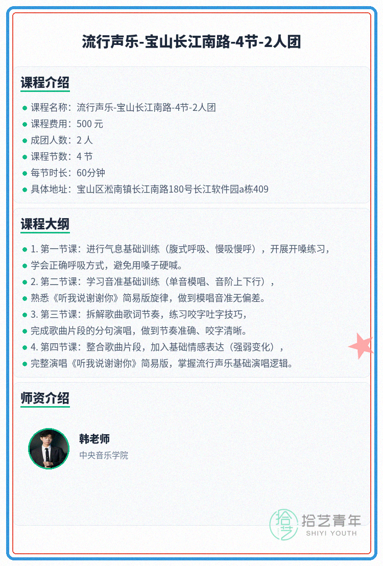 #上海夜校 #宝山夜校 #流行声乐课程 #夜校拼团 #上海线下课