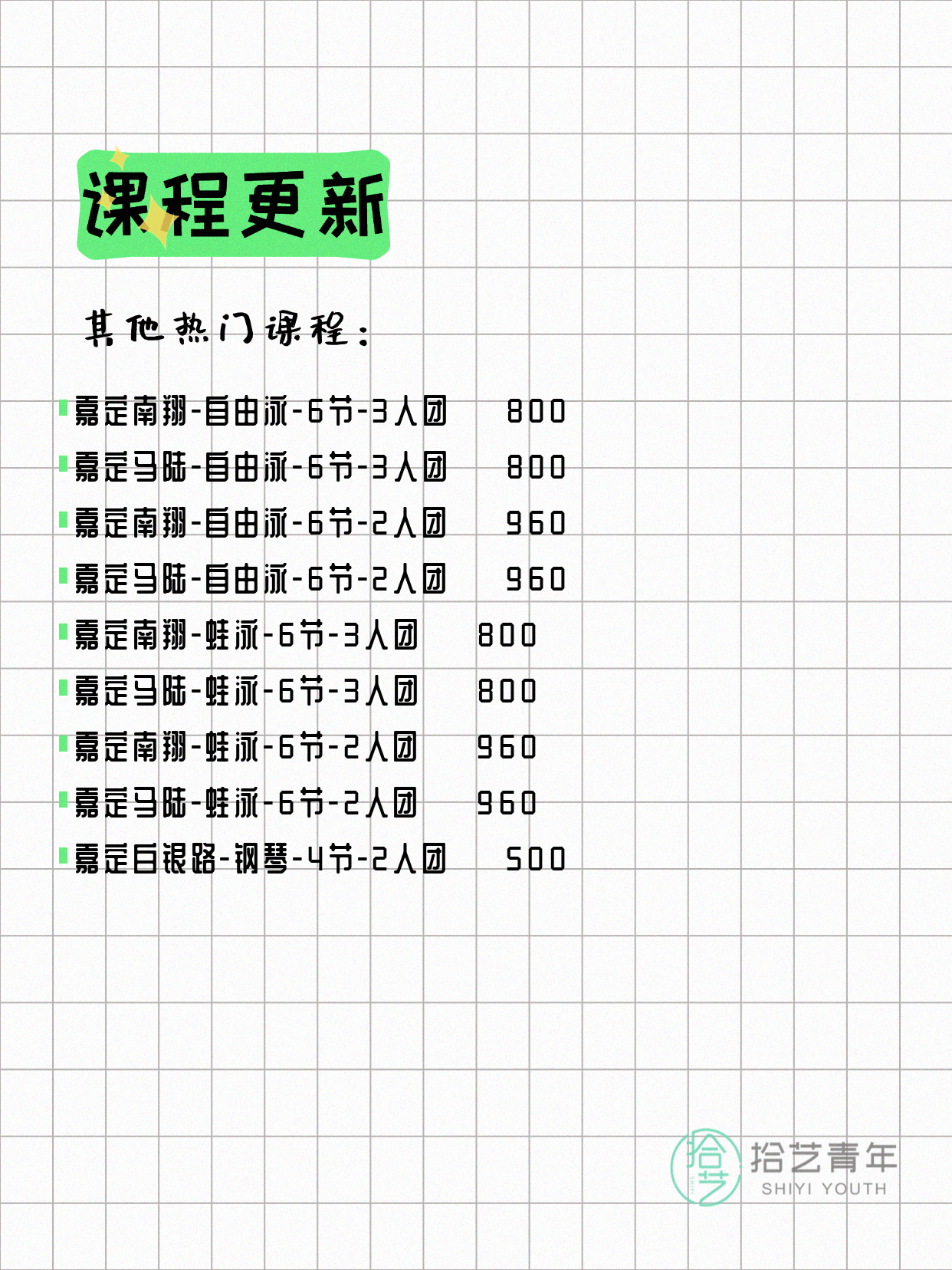 ⭐ 仰泳-嘉定南翔-6节-3人团 💰800