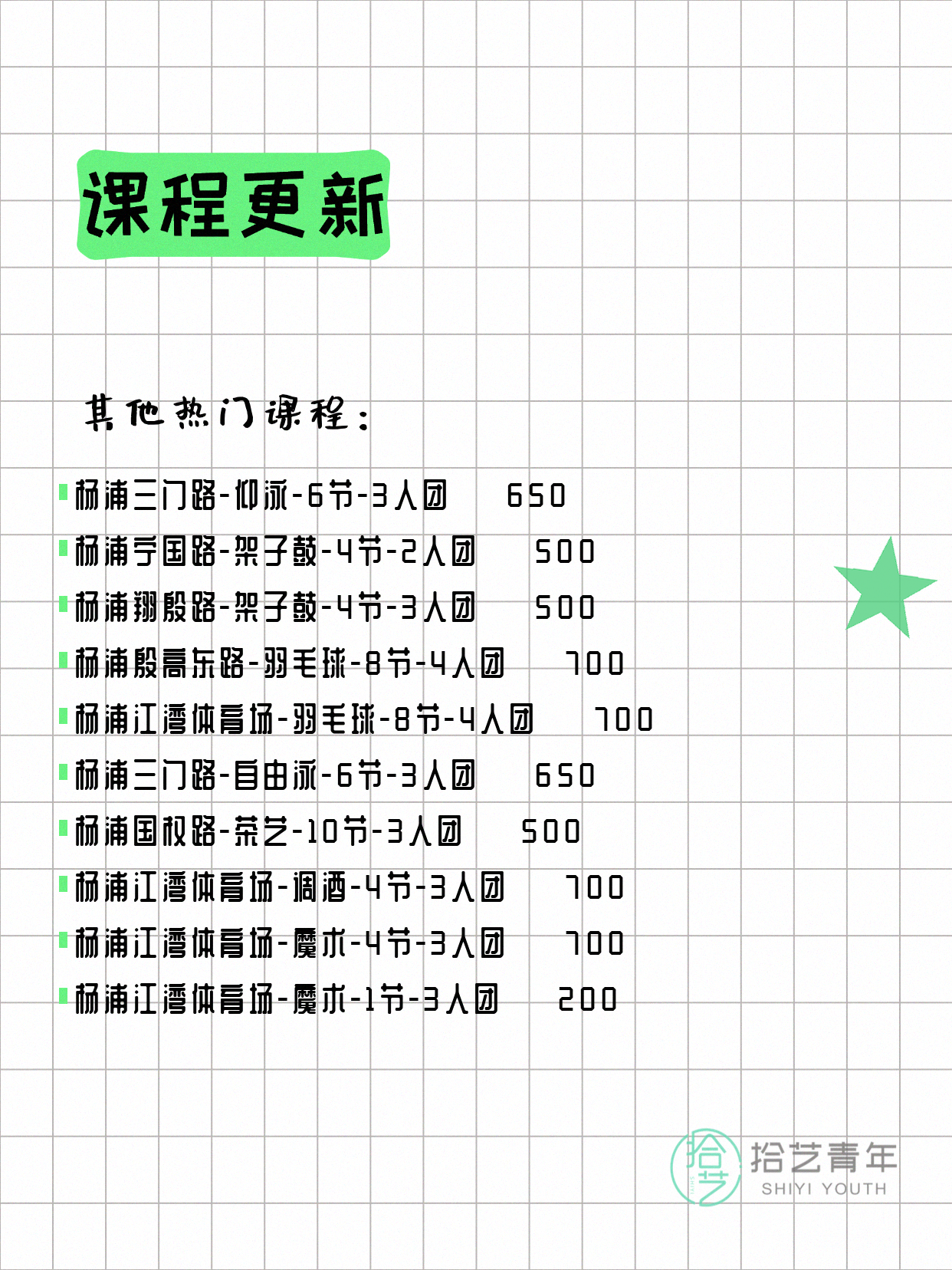 ⭐ 仰泳-杨浦三门路-6节-3人团 💰650