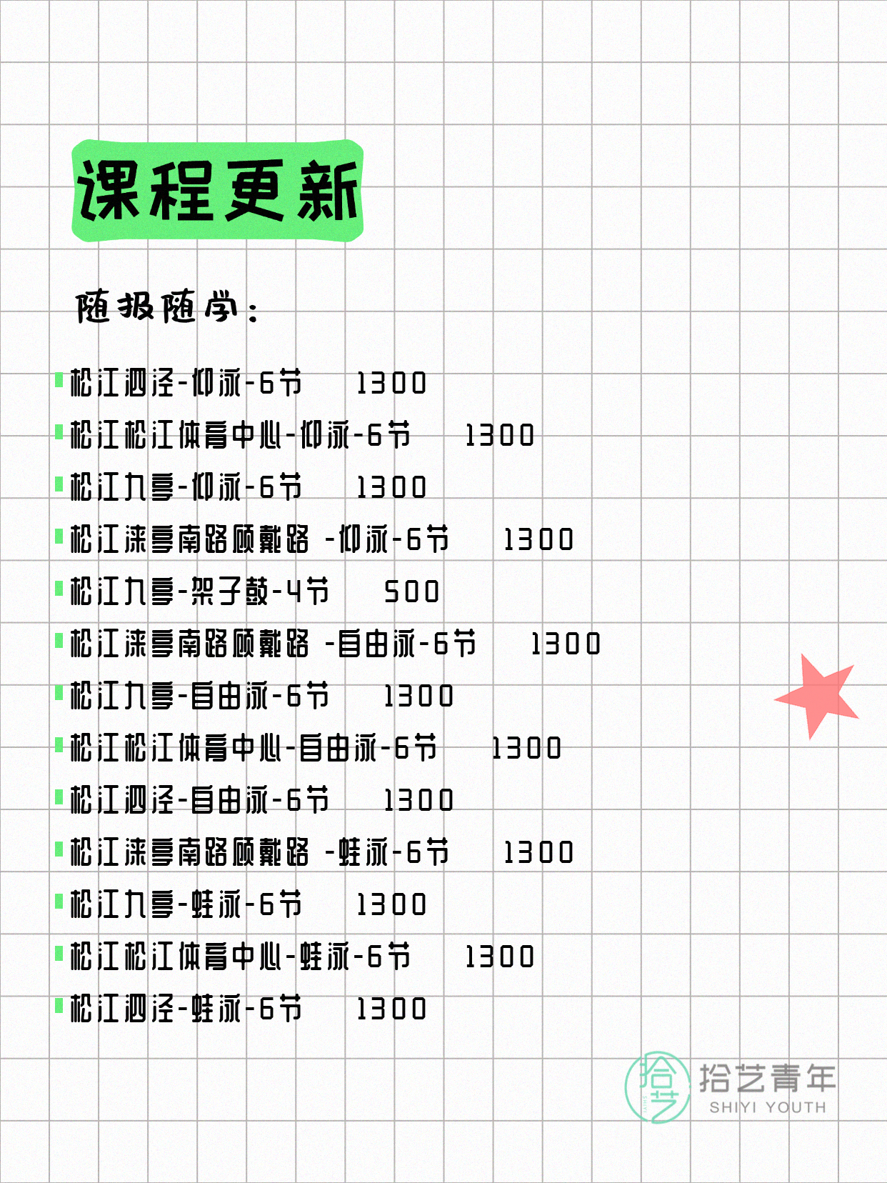 📌 仰泳-松江九亭-6节-私教 💰1300