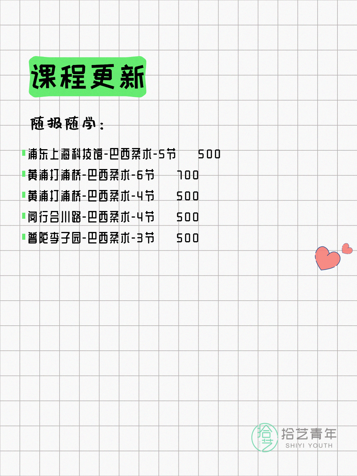 📌 巴西柔术-黄浦打浦桥-6节-一人即可 💰700