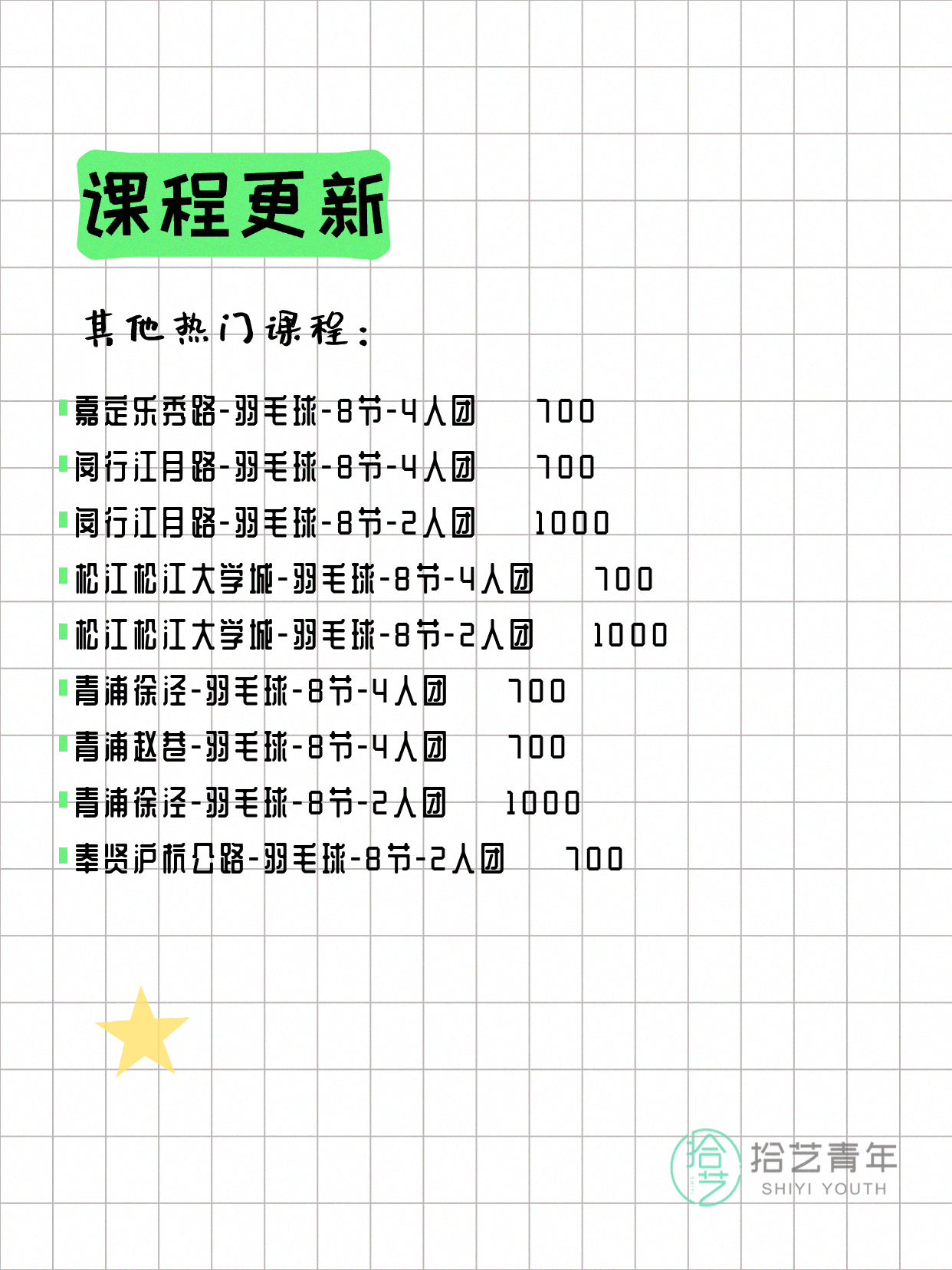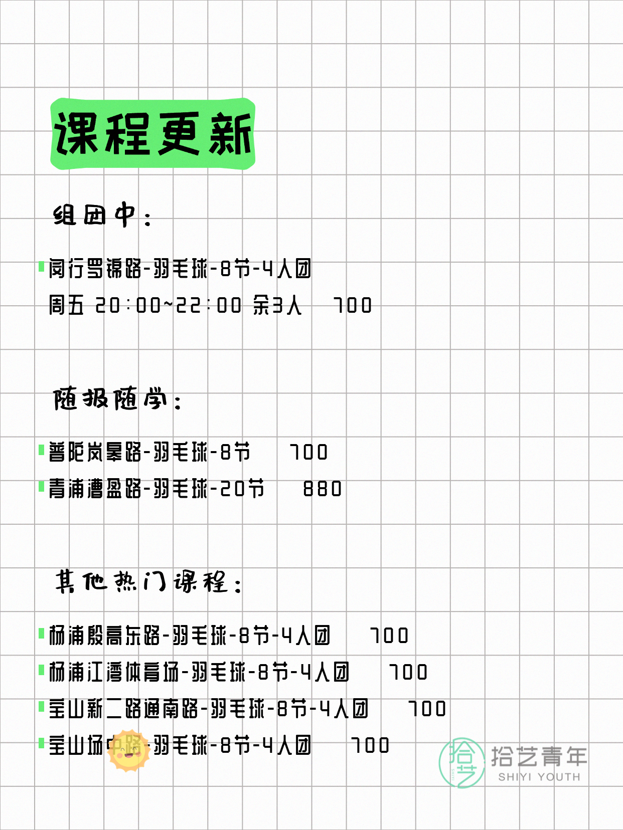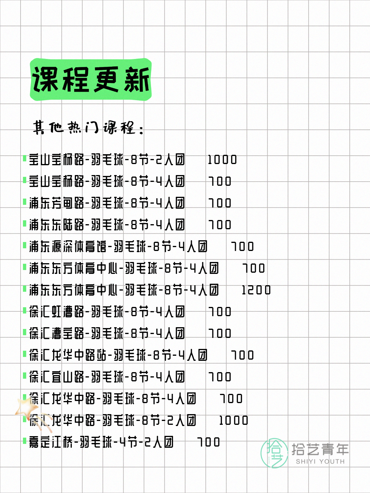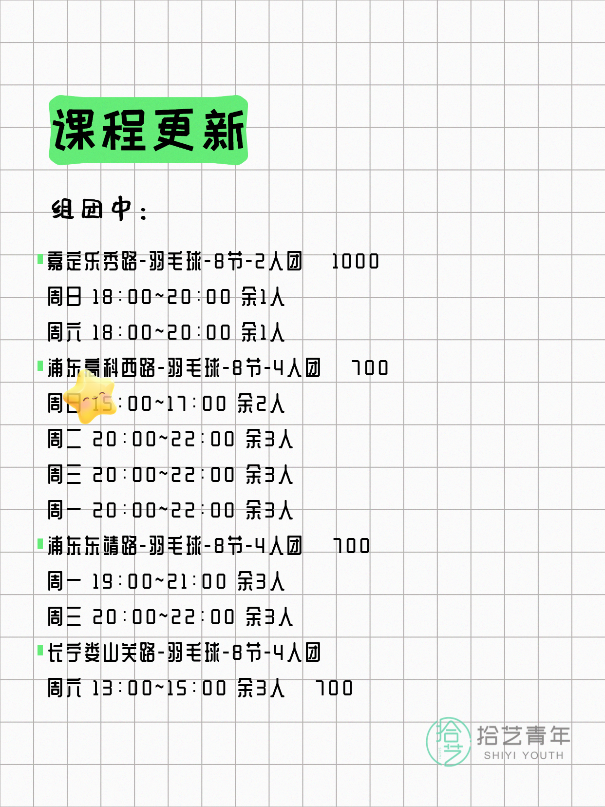 ⭐ 羽毛球-徐汇宜山路-8节-4人团 💰700