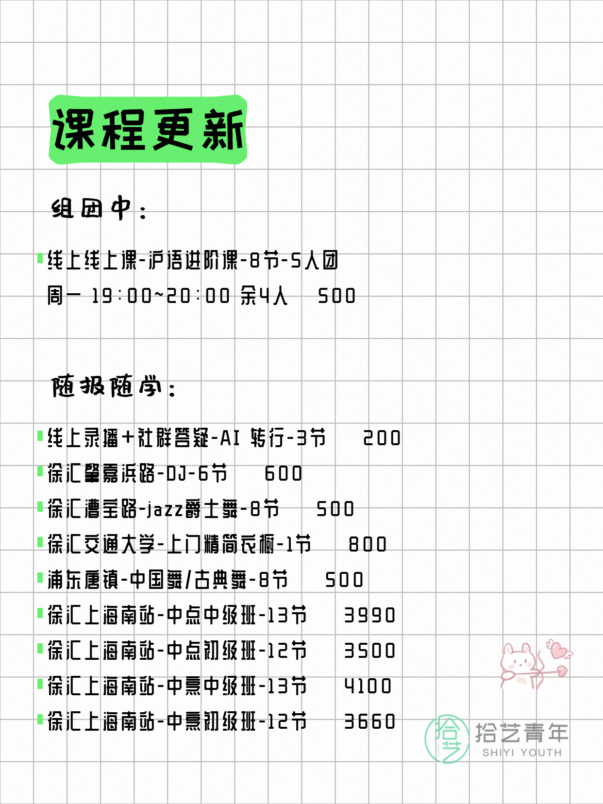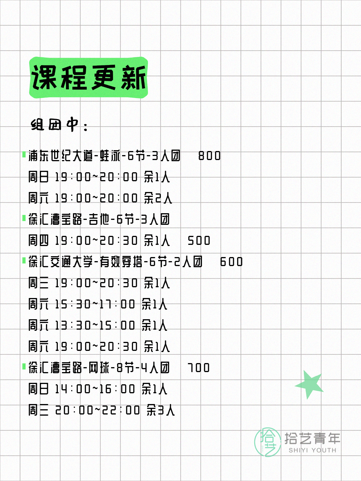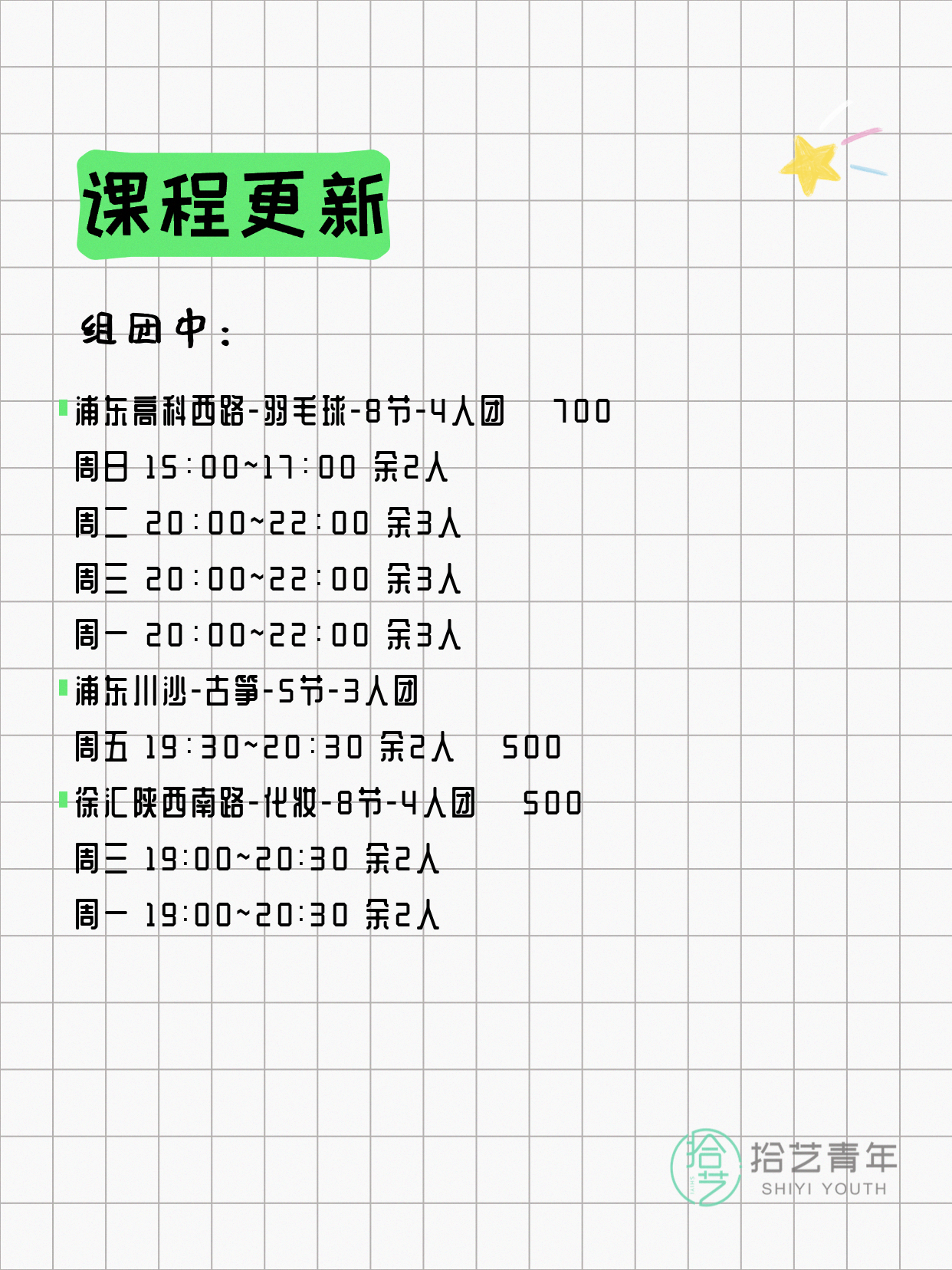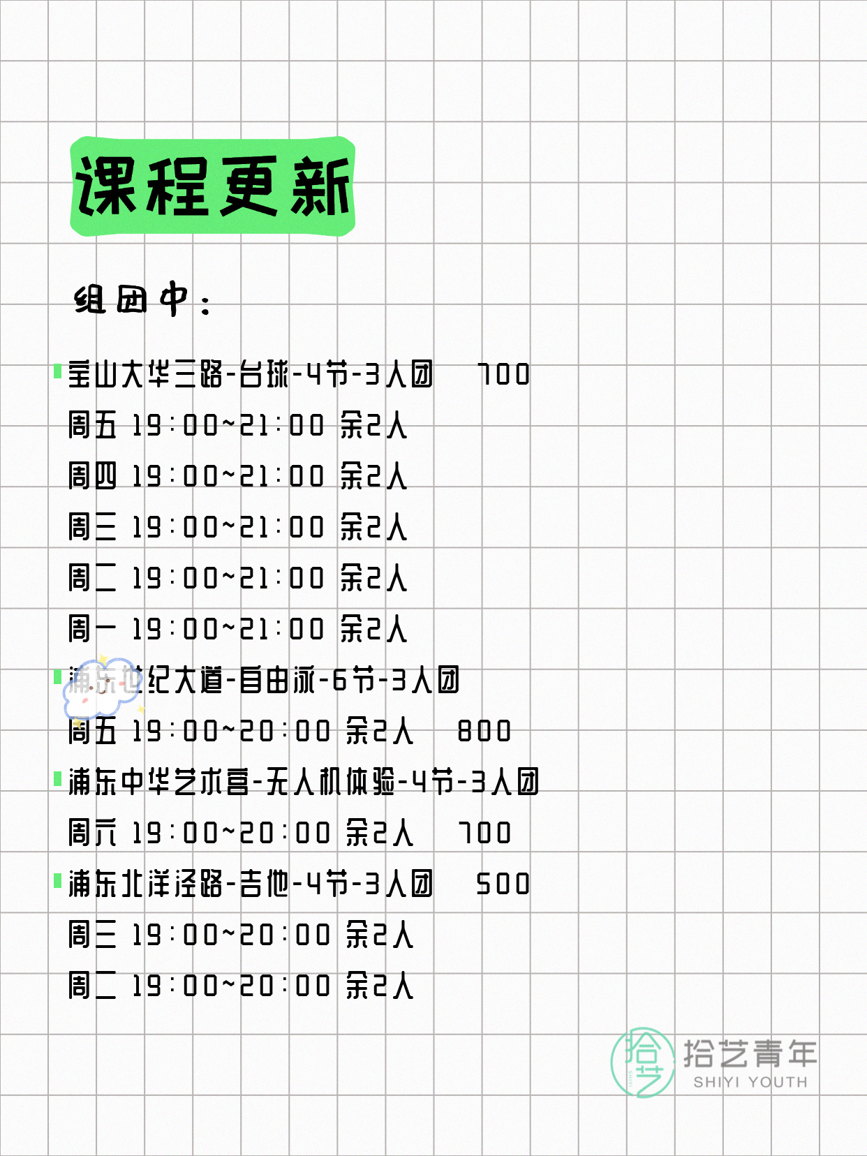 今日上海夜校课表更新!25个课程差1人就能成团开课,快约上好友一起解锁新技能