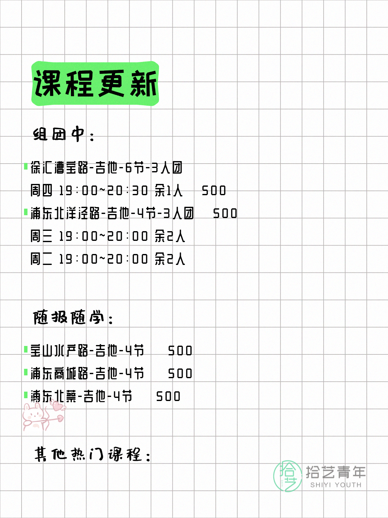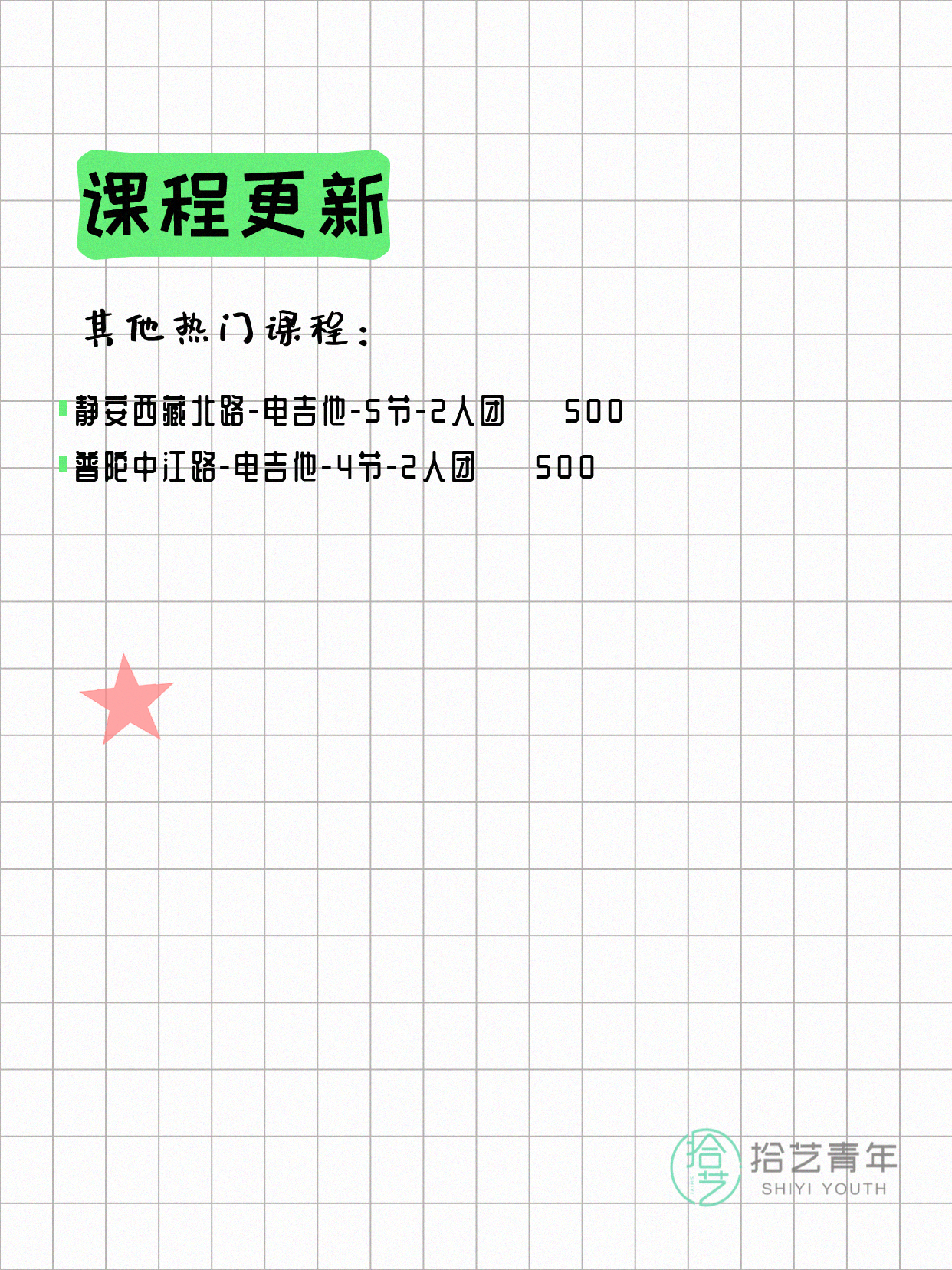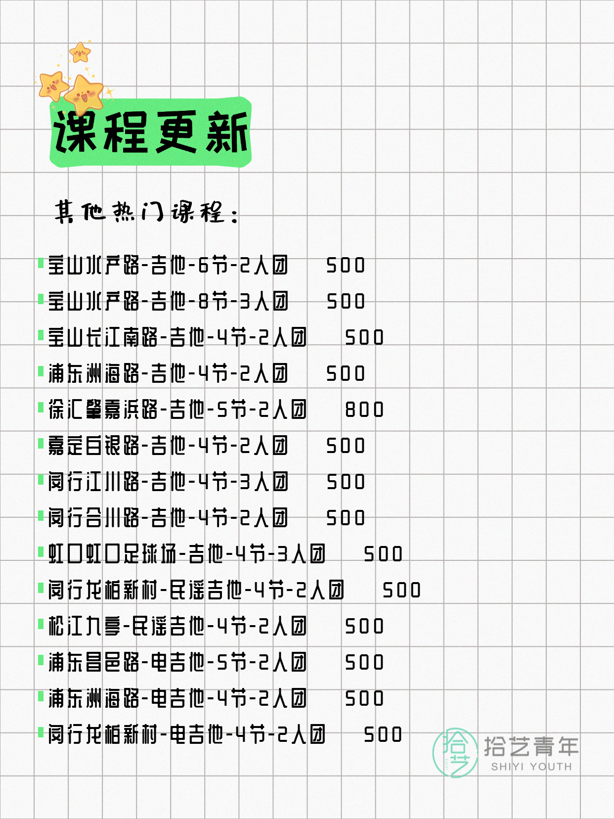 🔥 吉他-浦东北洋泾路-4节-3人团 💰500