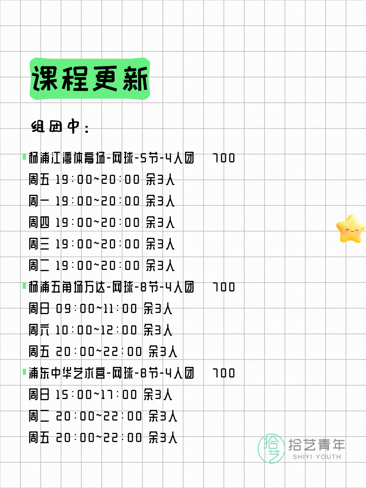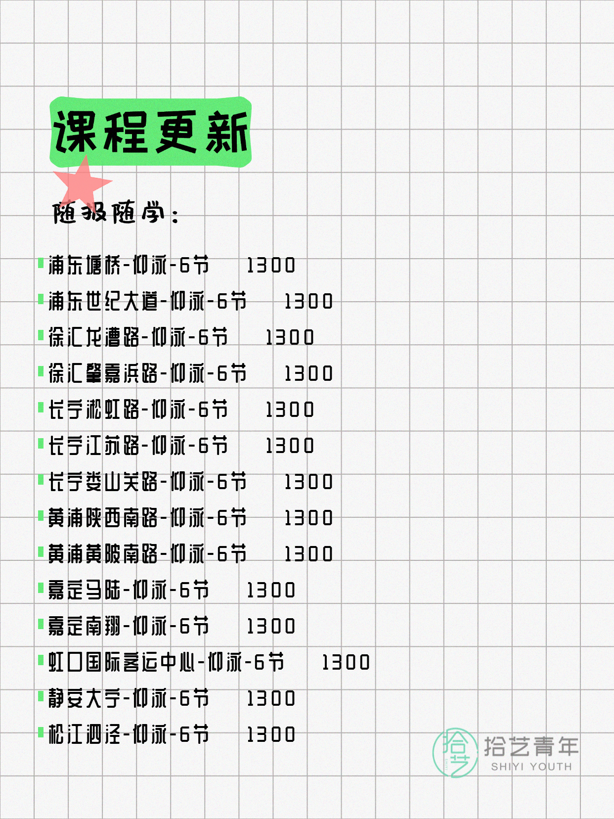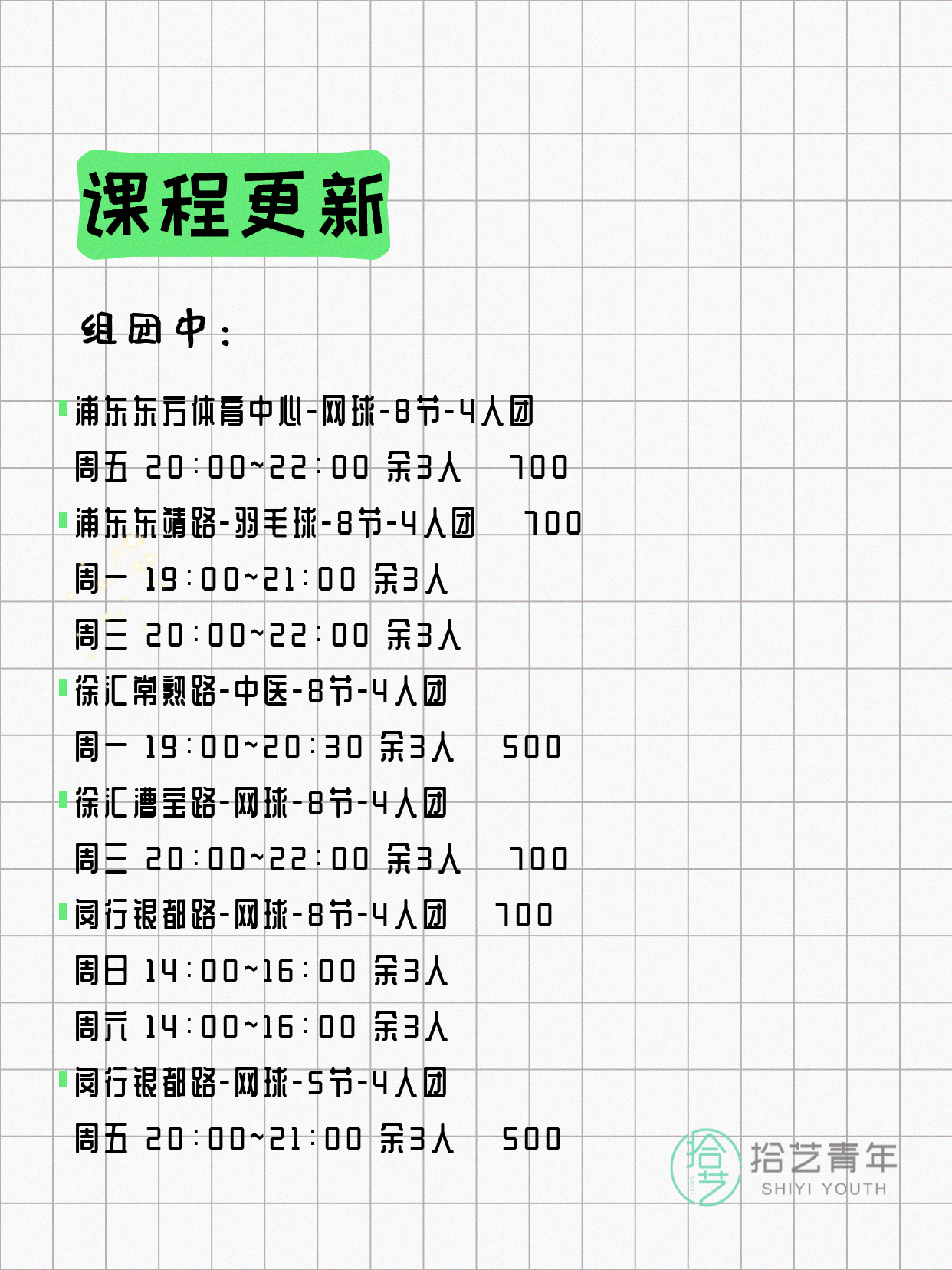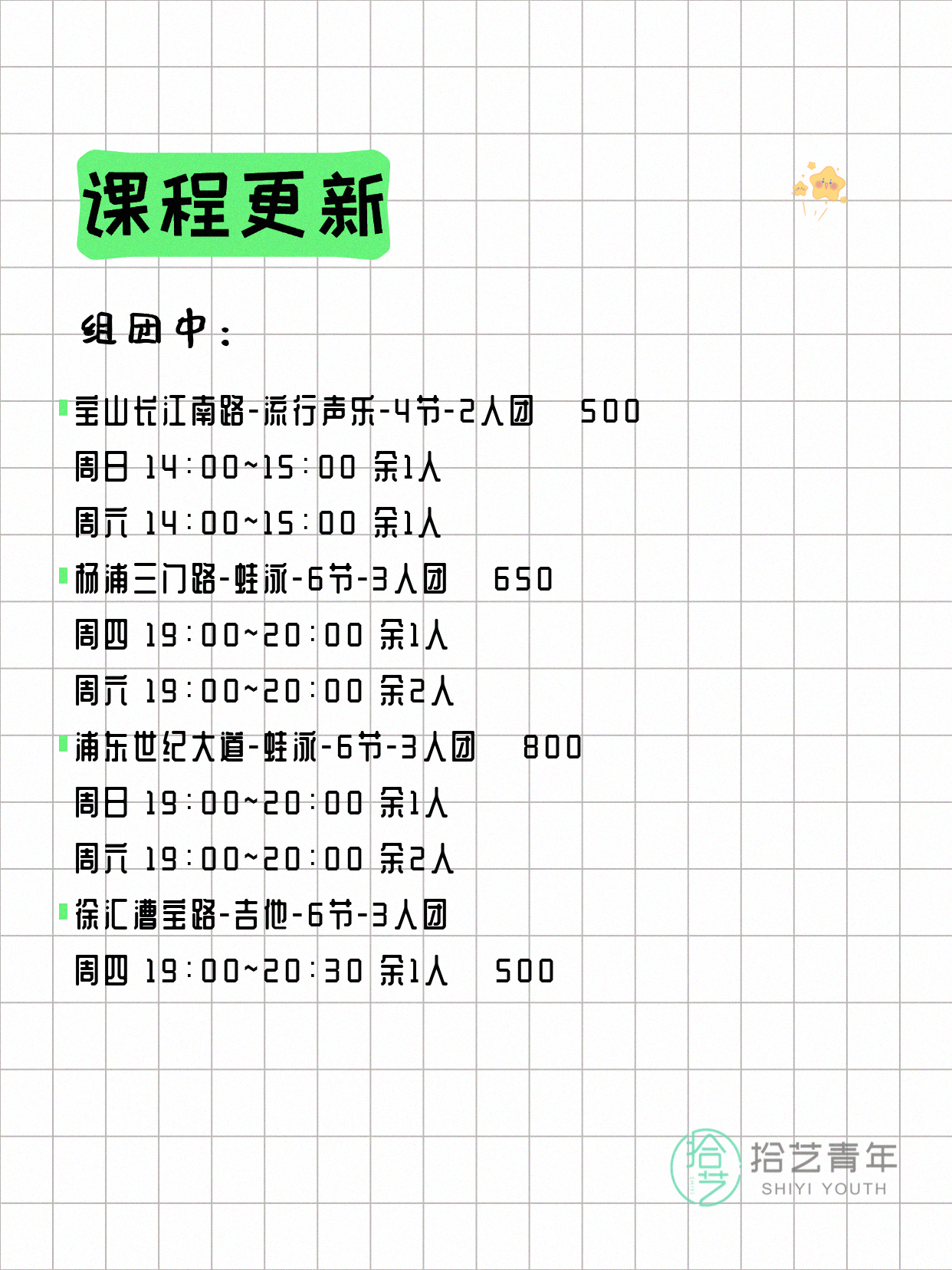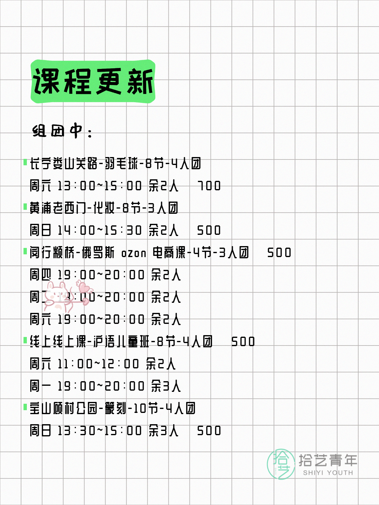 💡 提示:以上课程信息来自拾艺青年小程序,课程可能随报名动态变化,具体以小程序实时信息为准。