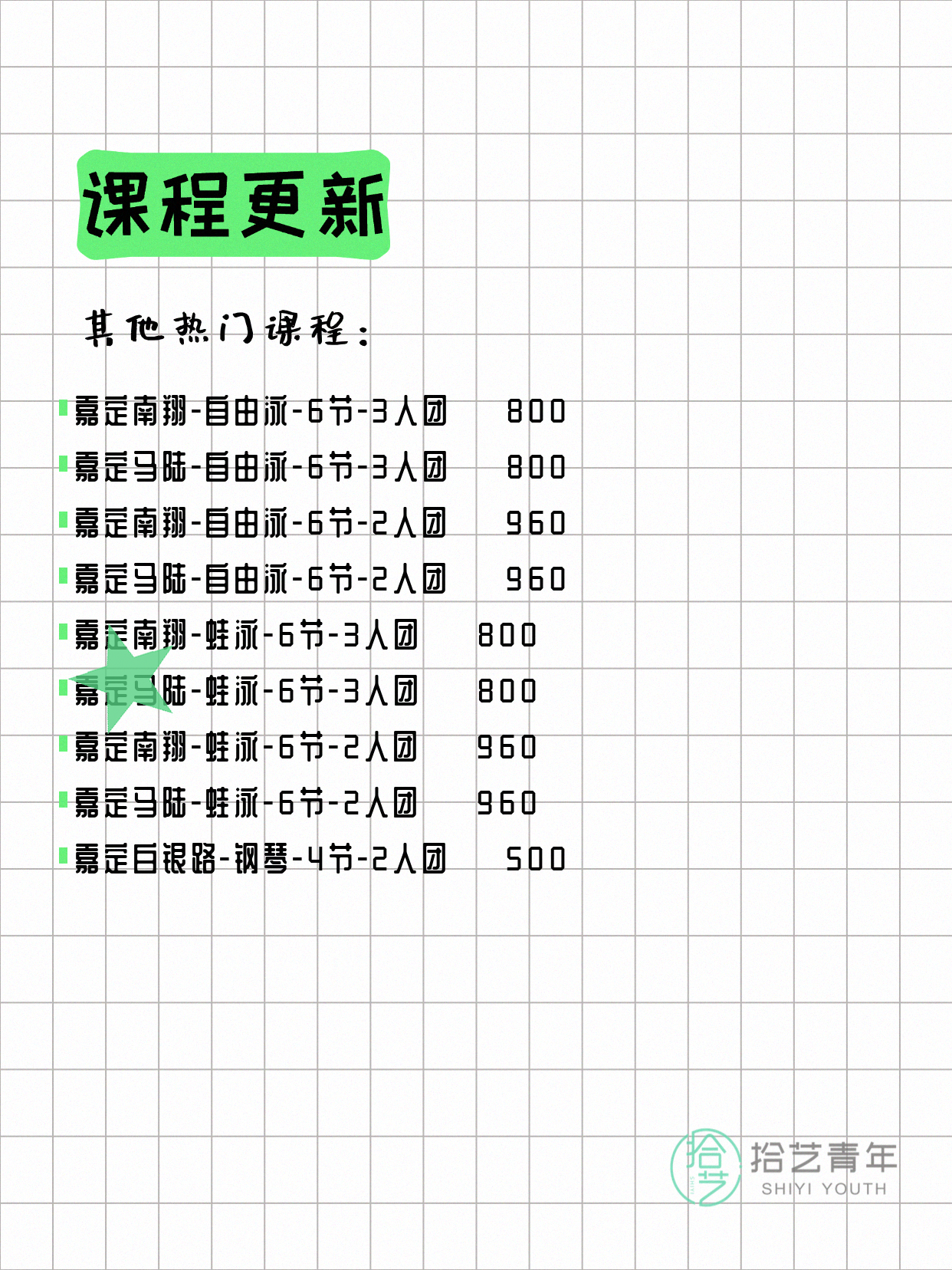 ⭐ 仰泳-嘉定南翔-6节-3人团 💰800