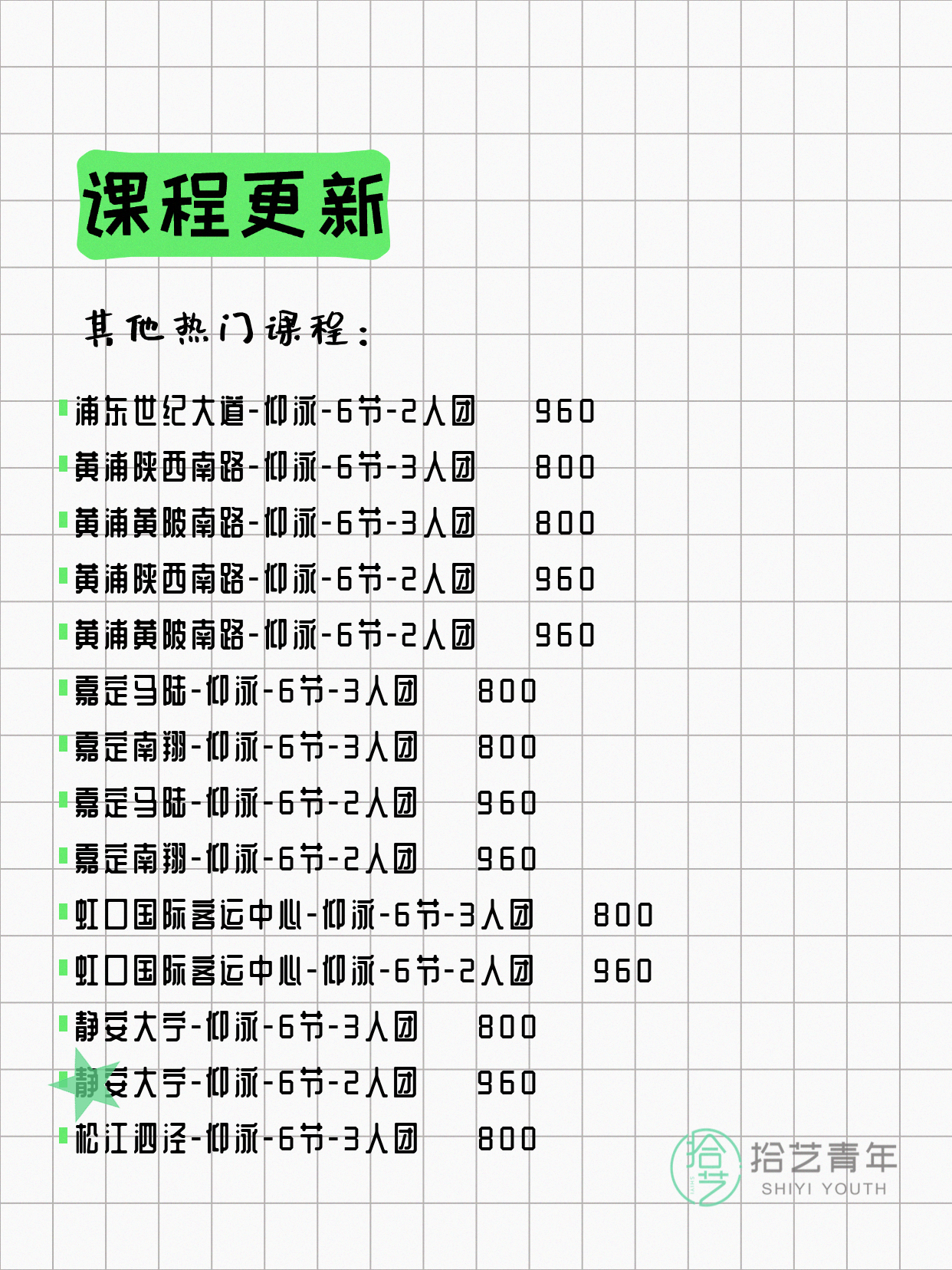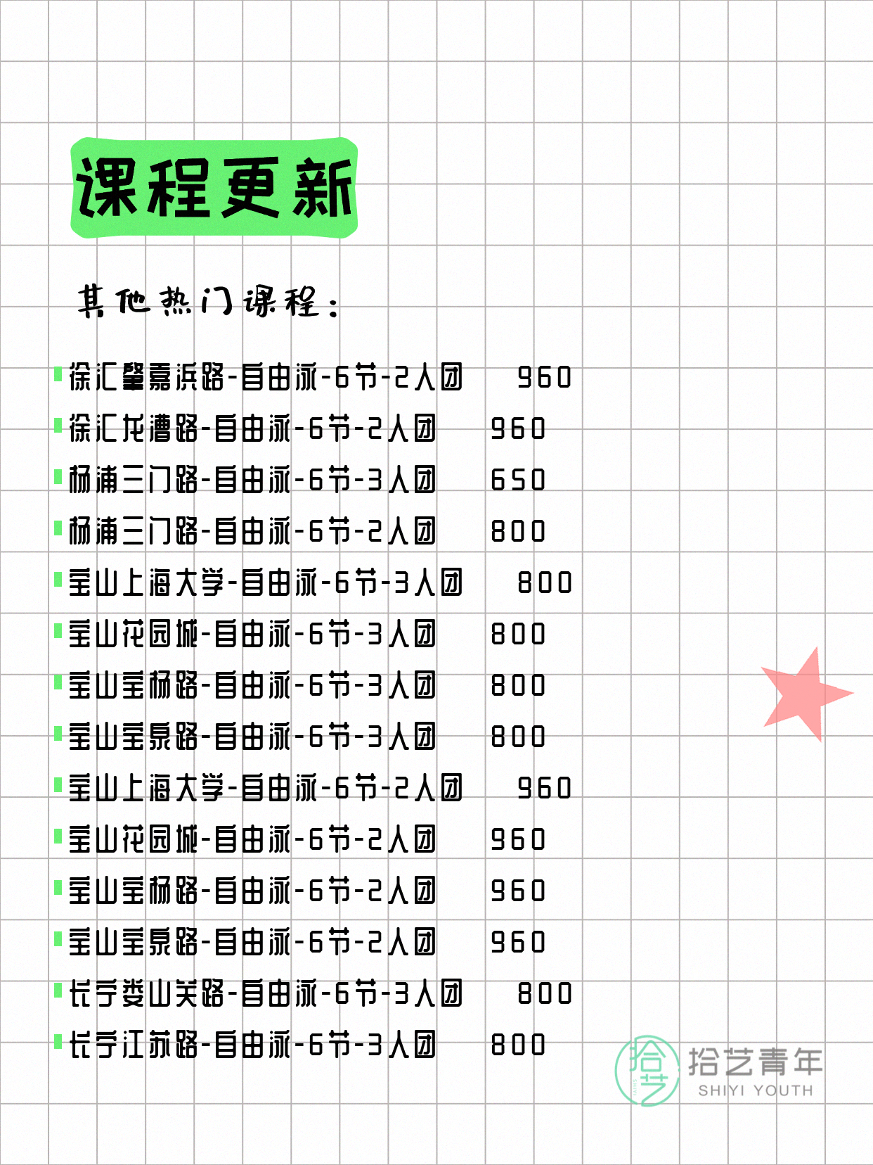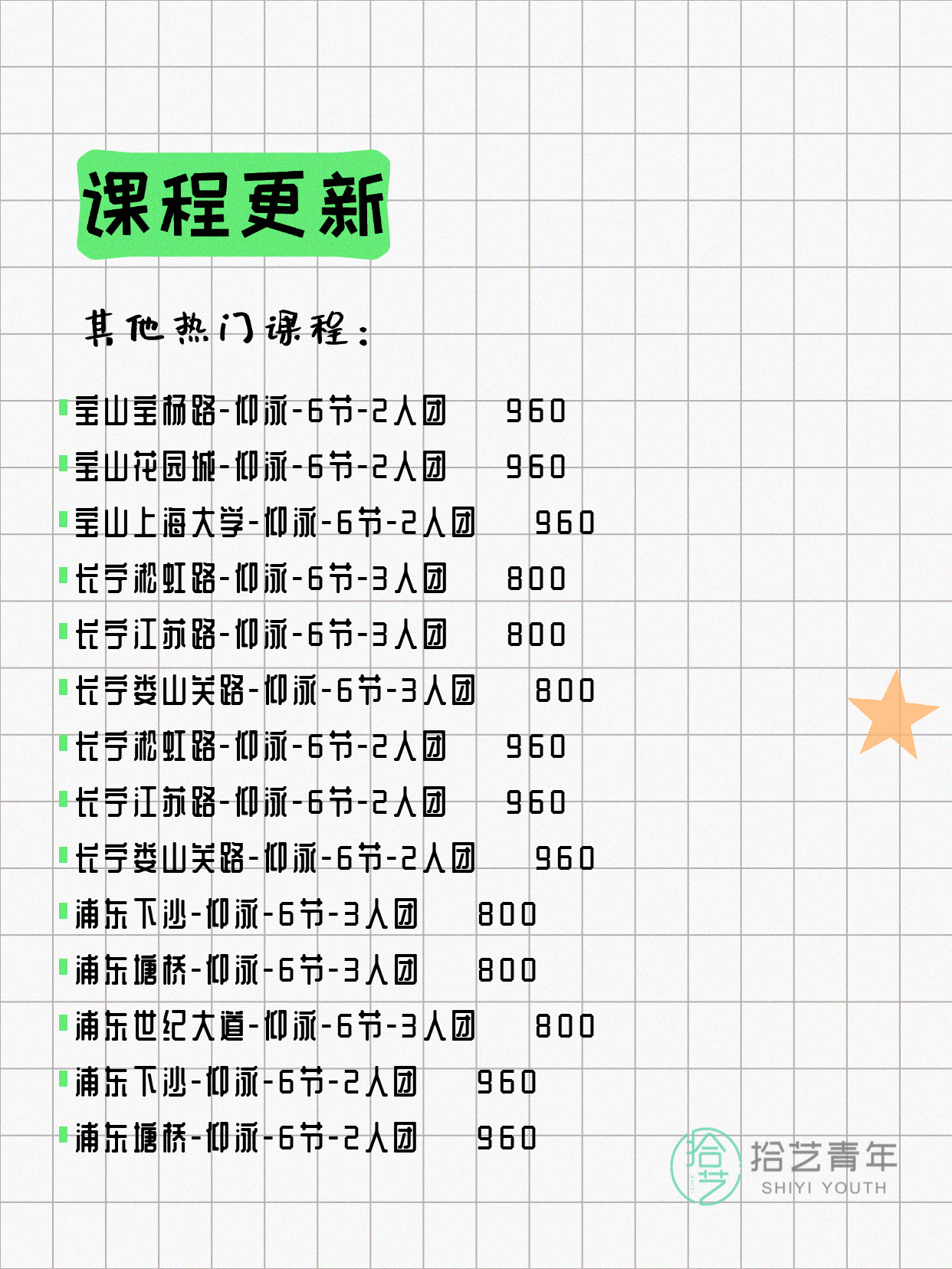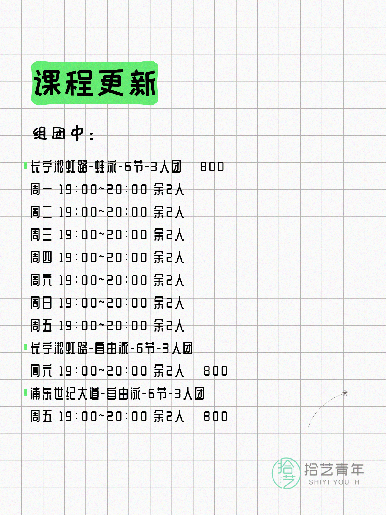 ⭐ 仰泳-杨浦三门路-6节-3人团 💰650