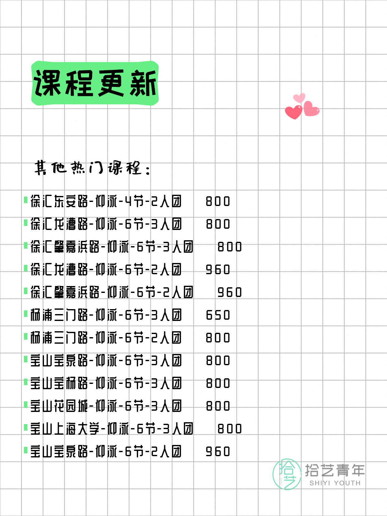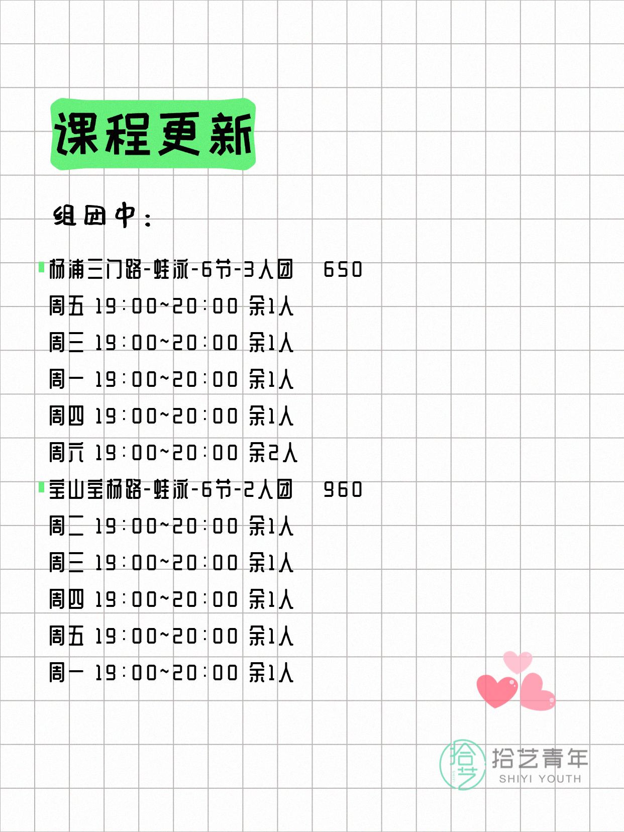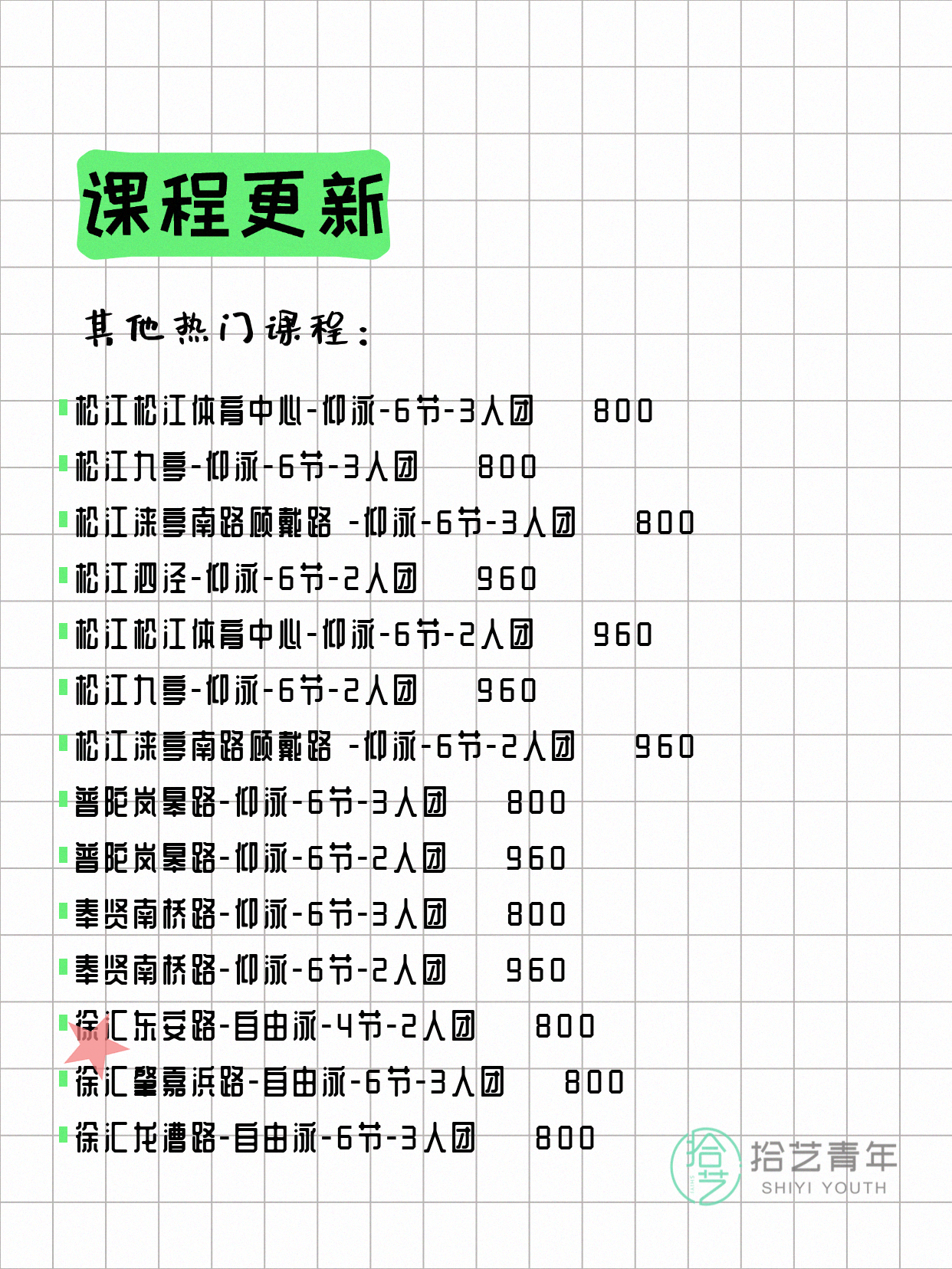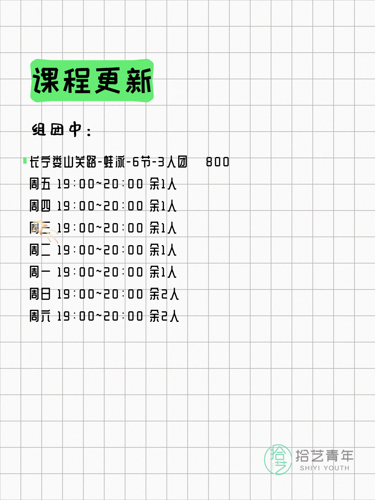 ⭐ 仰泳-杨浦三门路-6节-3人团 💰650