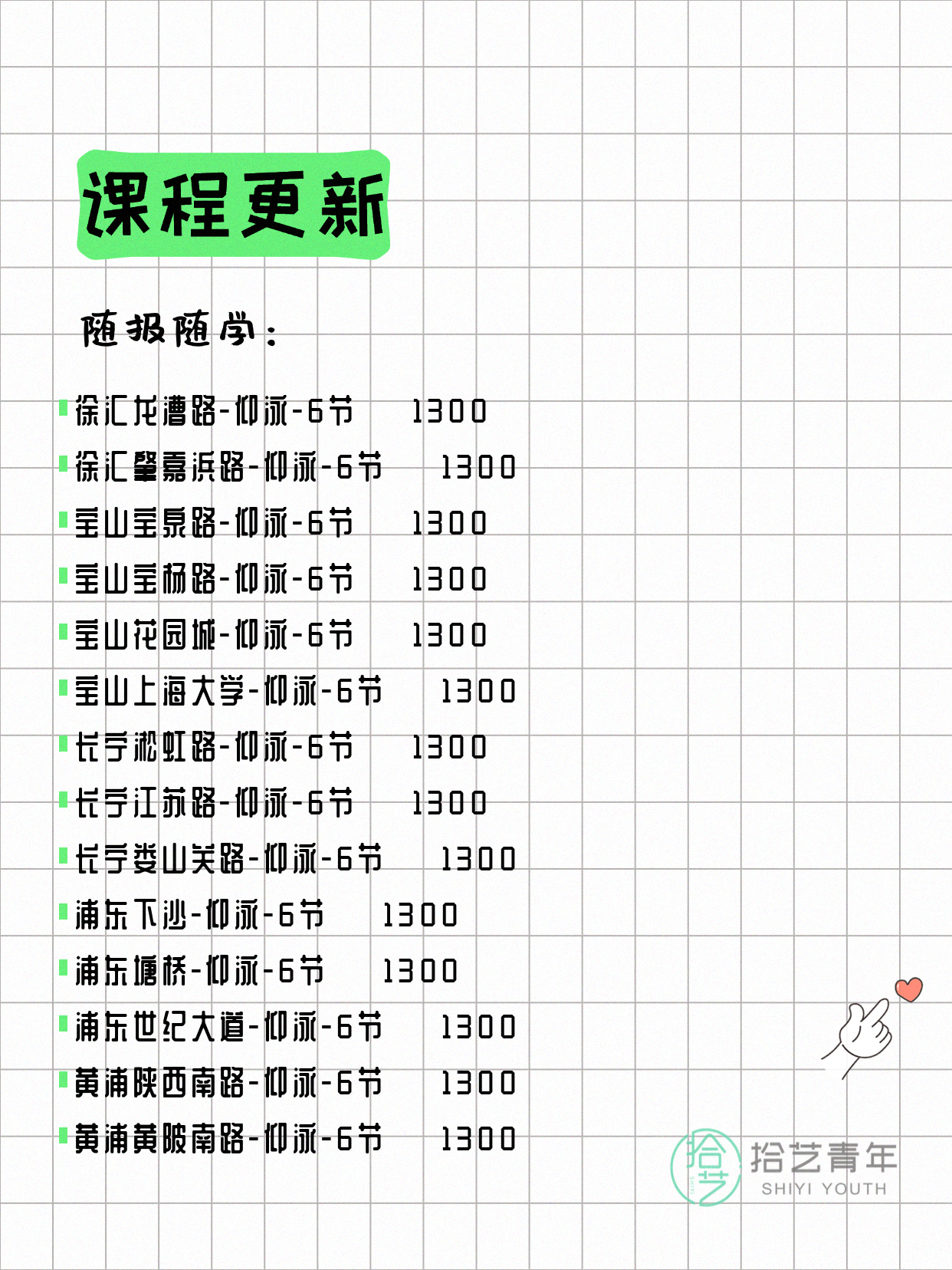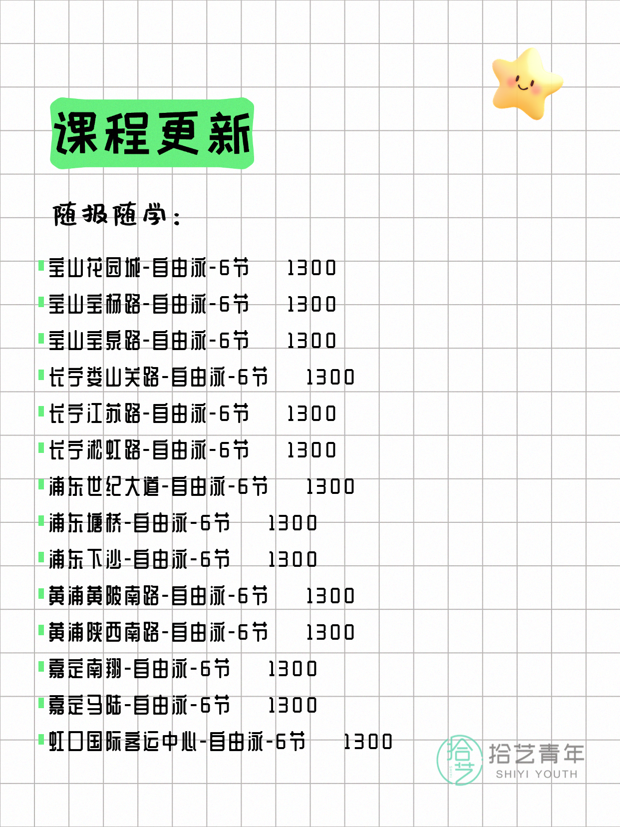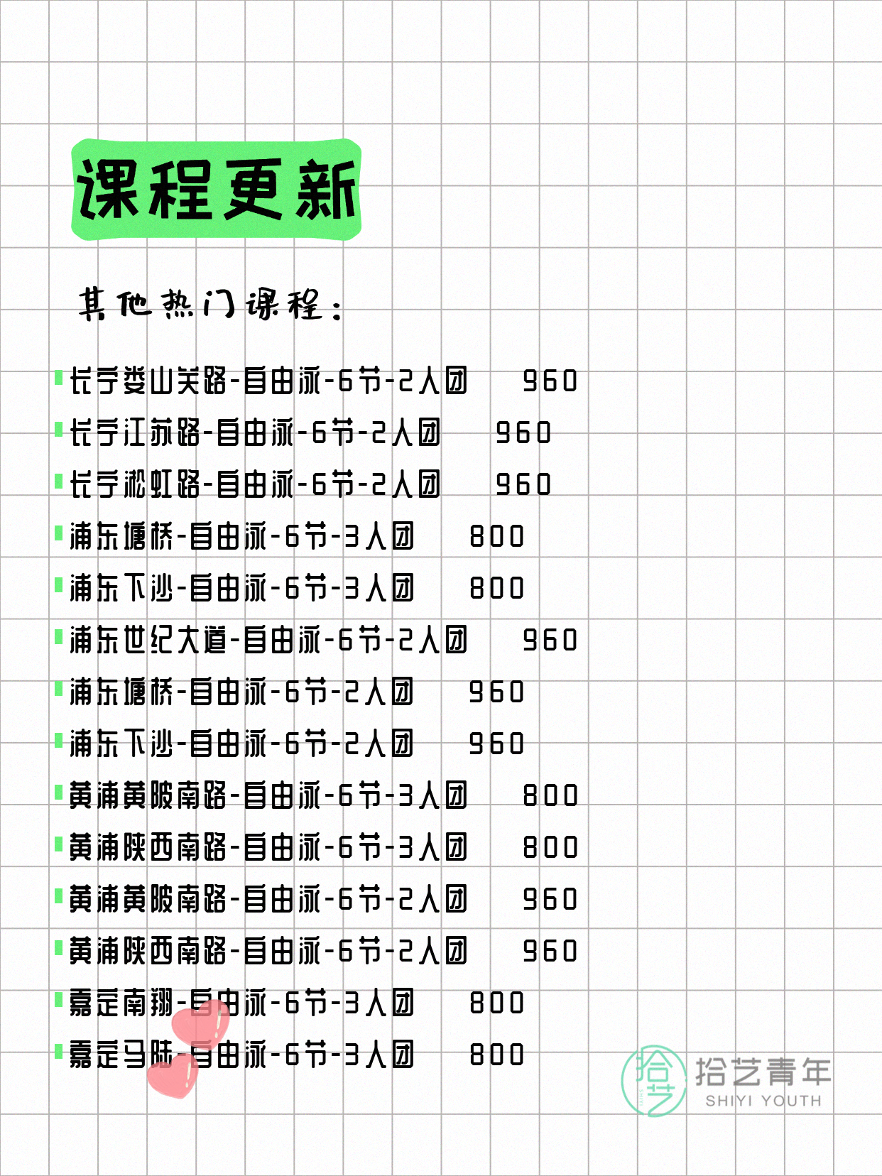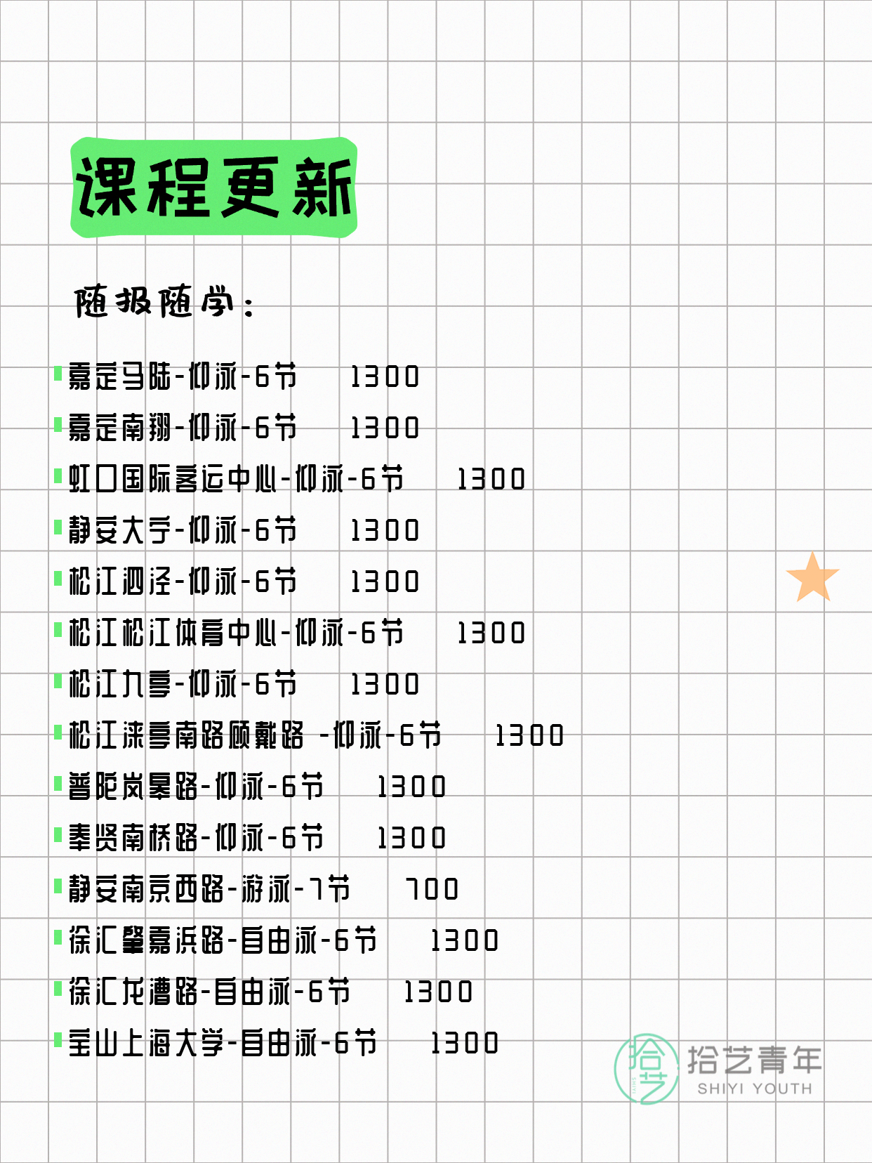 ⭐ 仰泳-杨浦三门路-6节-3人团 💰650
