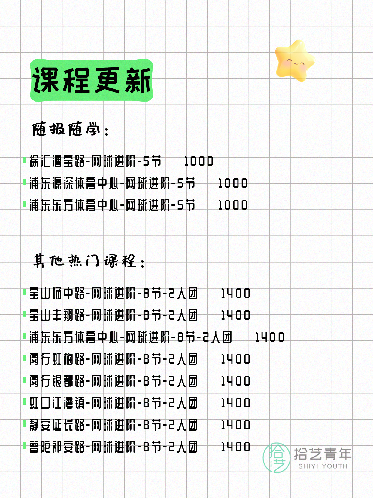 ⭐ 网球进阶-普陀祁安路-8节-2人团 💰1400