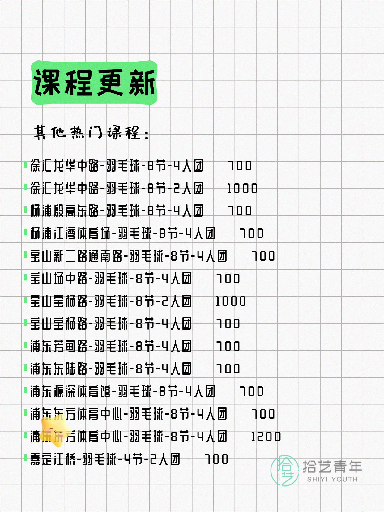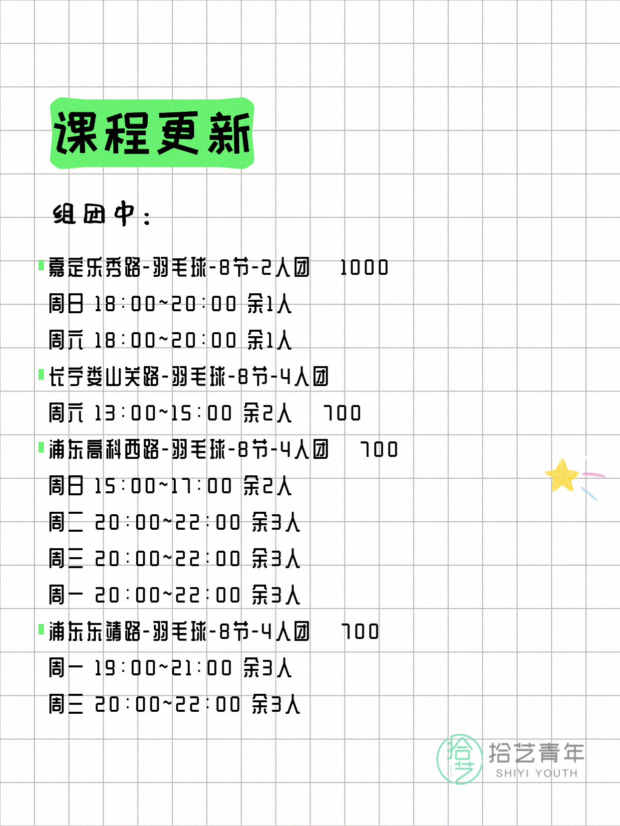 ⭐ 羽毛球-宝山宝杨路-8节-4人团 💰700