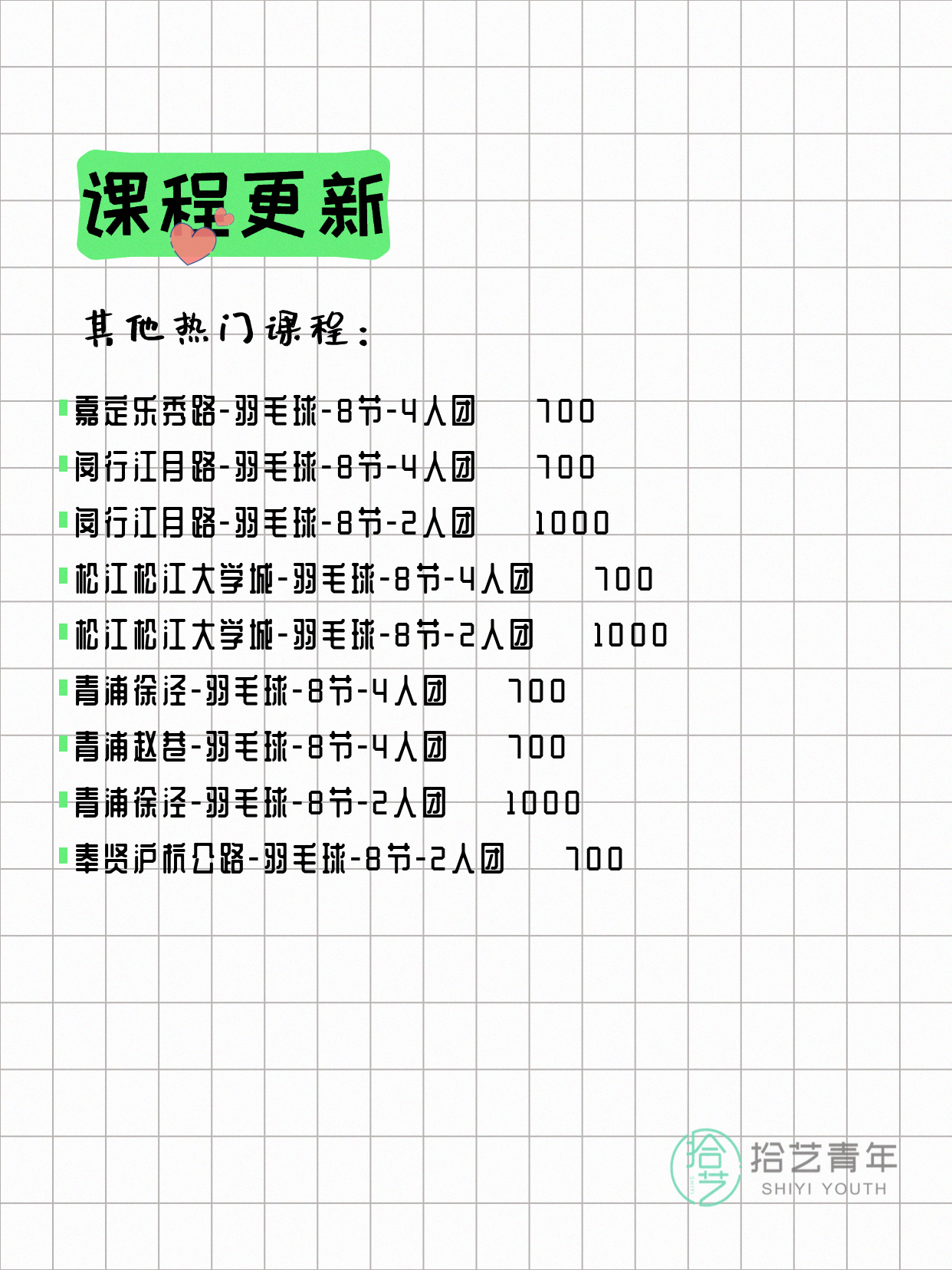 📌 羽毛球-青浦漕盈路-20节-一人即可 💰880