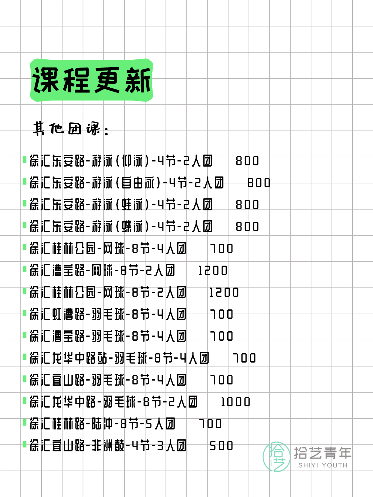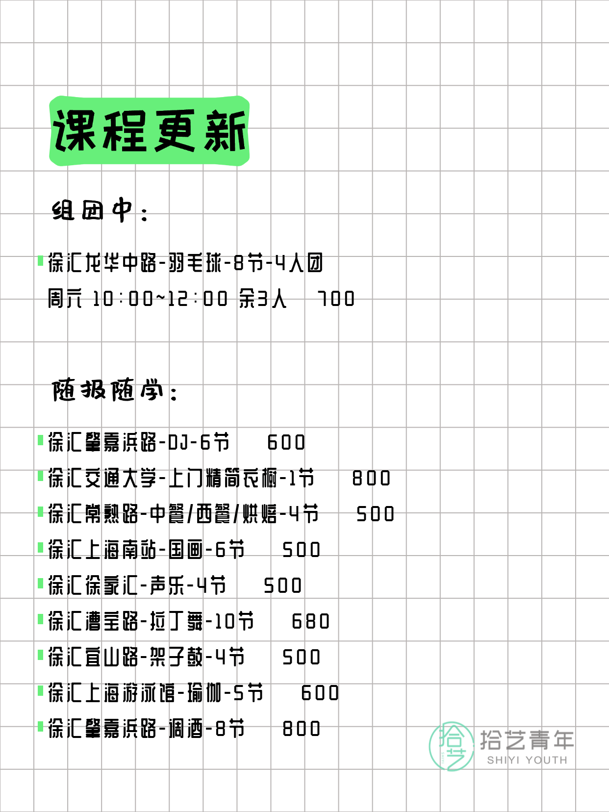 上海徐汇今日课程来了3月6日