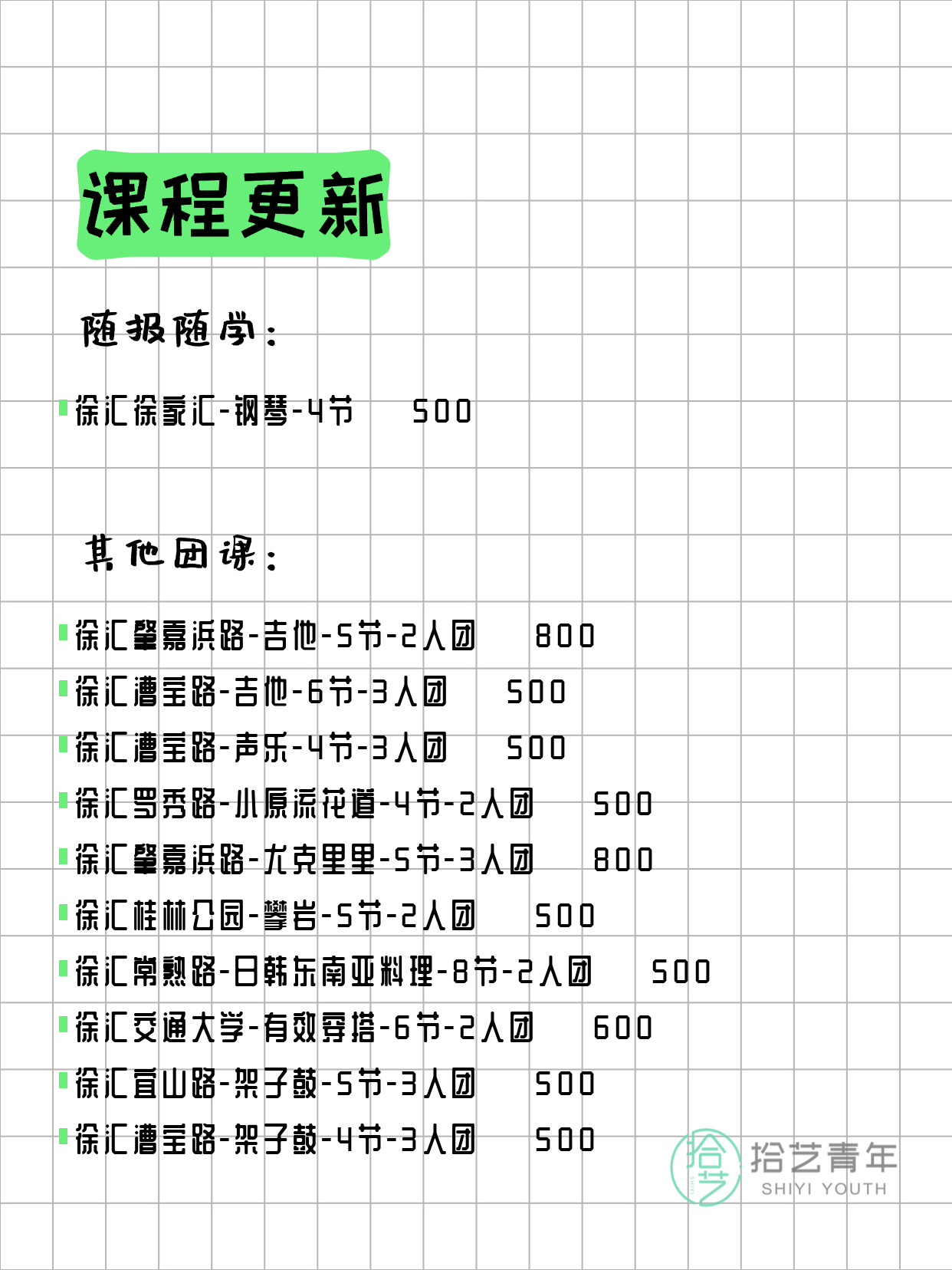 上海徐汇今日夜校课程更新 ↓