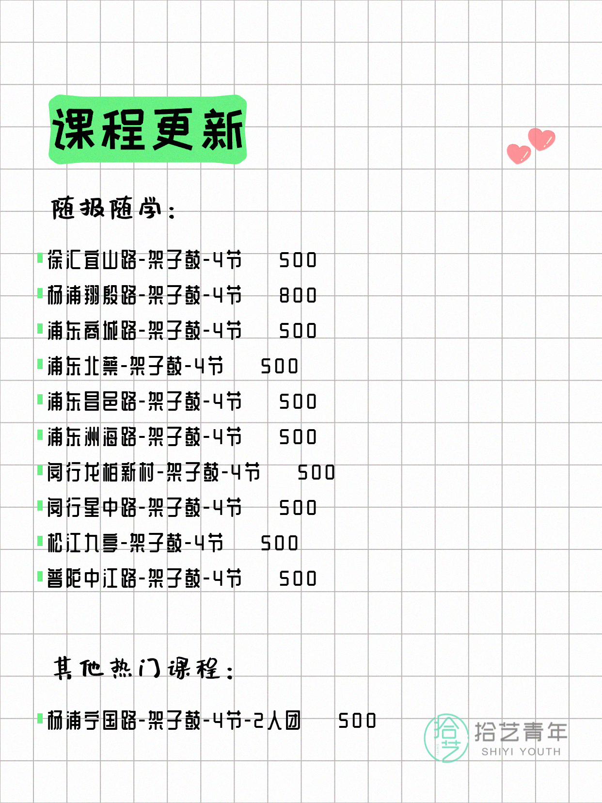 📌 架子鼓-浦东商城路-4节-一人即可 💰500