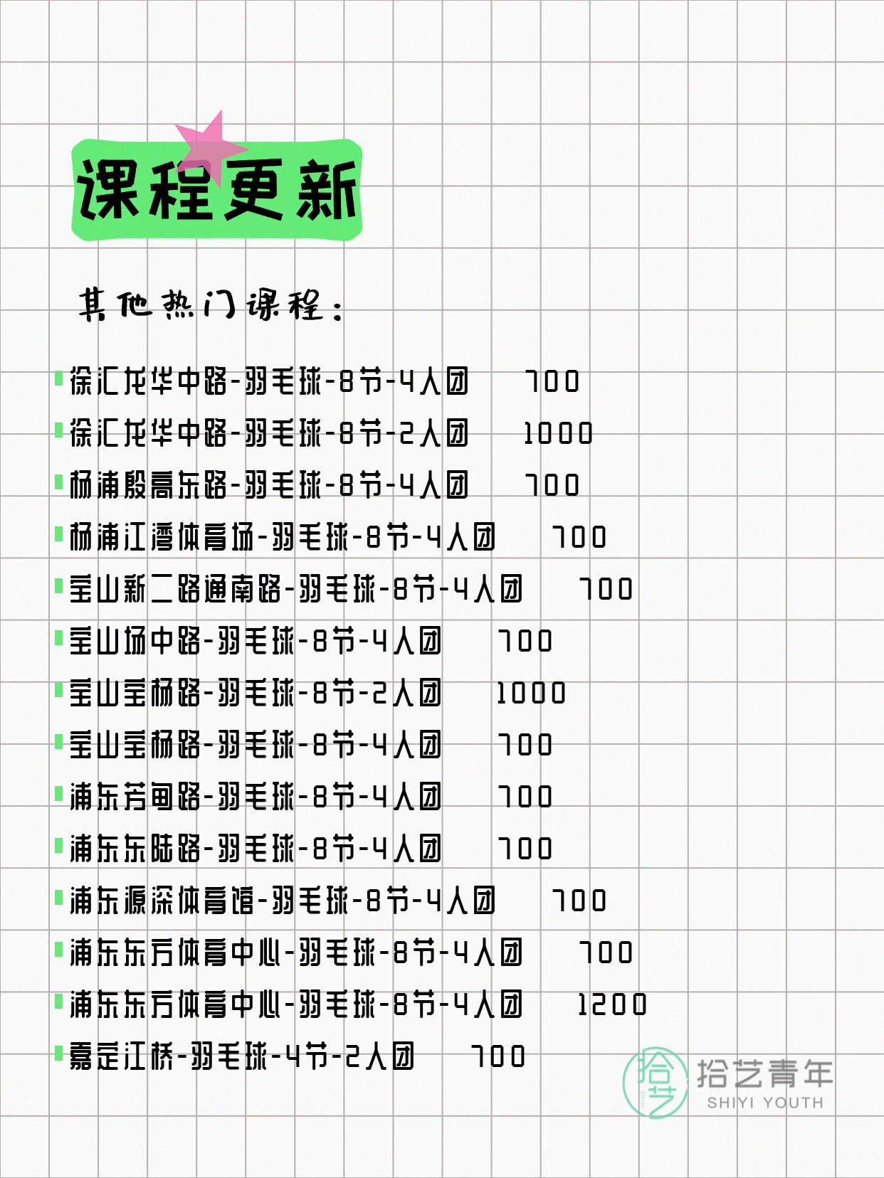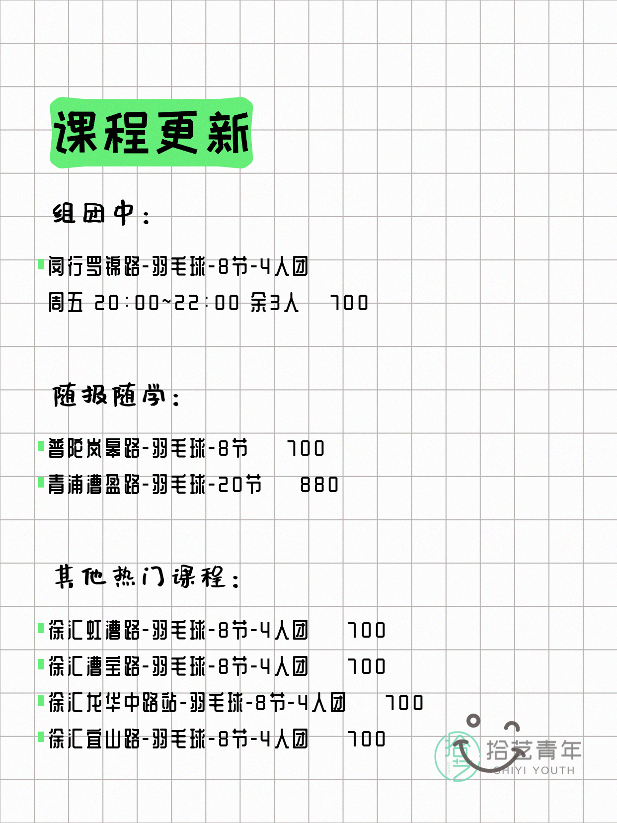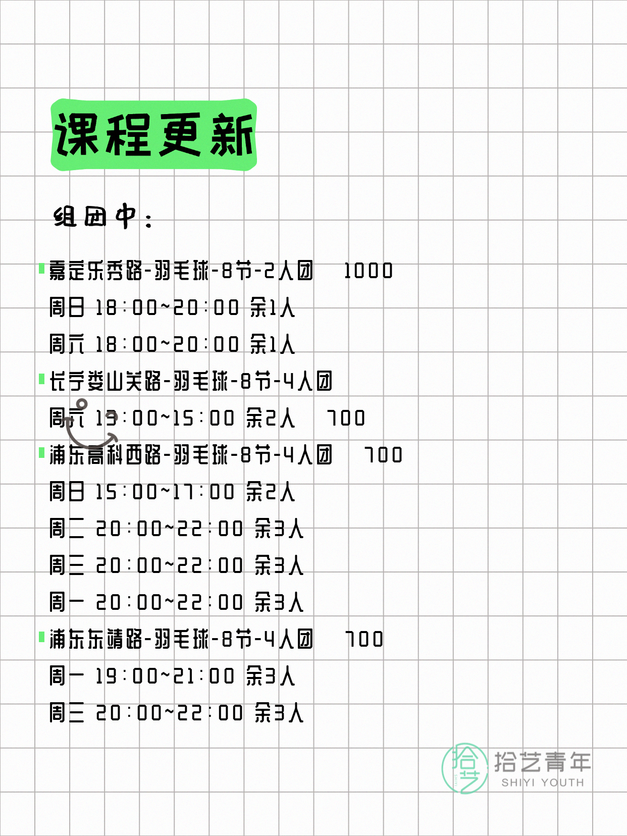 📌 羽毛球-青浦漕盈路-20节-一人即可 💰880