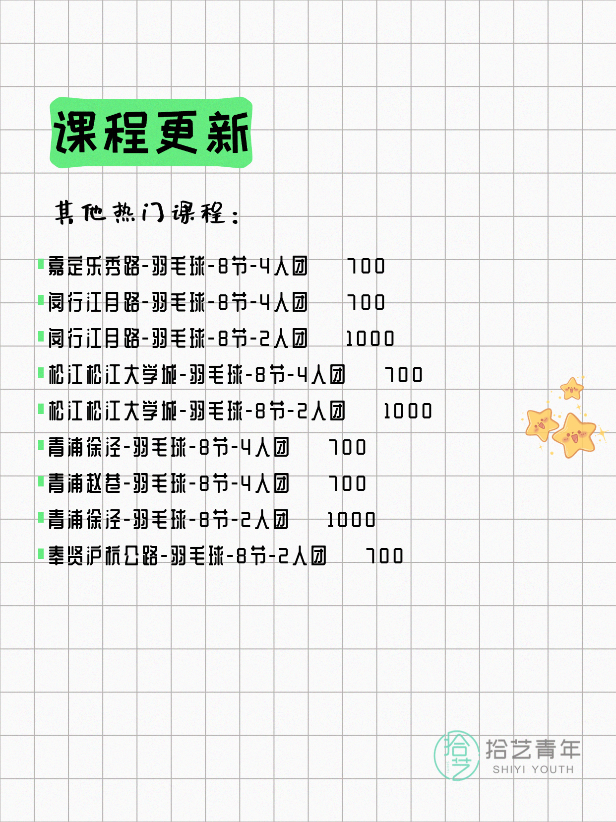 🔥 羽毛球-嘉定乐秀路-8节-2人团 💰1000