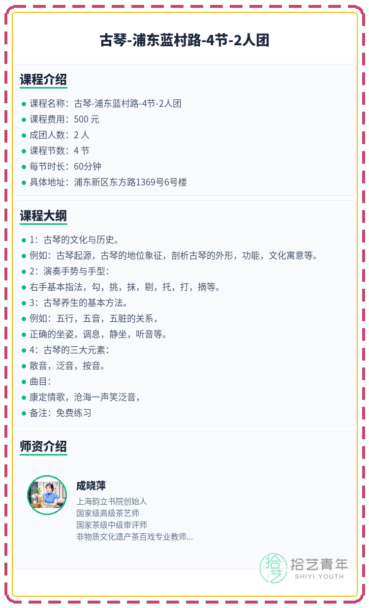 #上海夜校 #浦东夜校 #古琴课程 #夜校拼团 #上海线下课