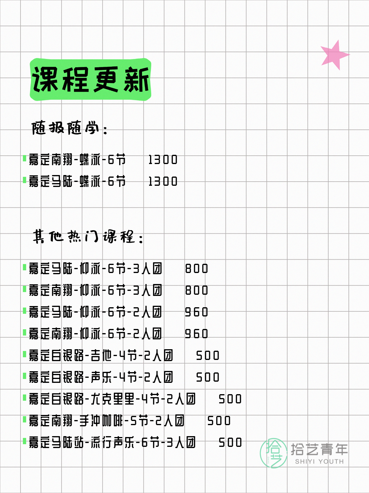 ⭐ 仰泳-嘉定马陆-6节-3人团 💰800
