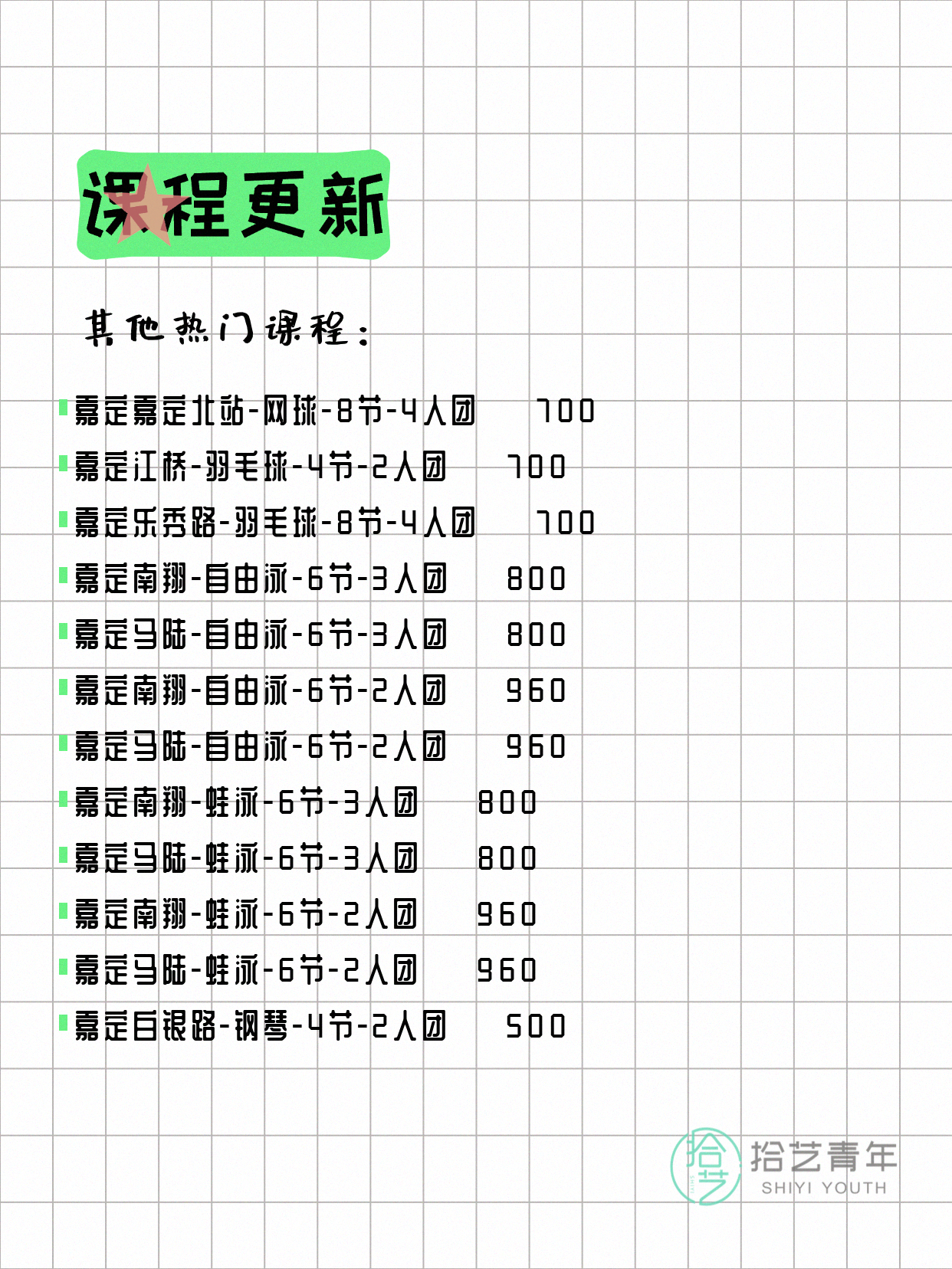 💡 提示:以上课程信息来自拾艺青年小程序,课程可能随报名动态变化,具体以小程序实时信息为准。