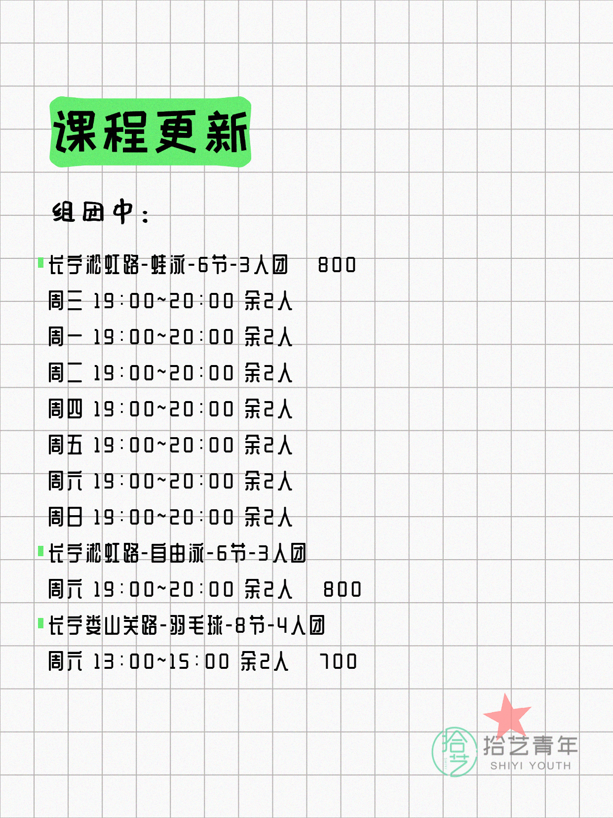 ⭐ 仰泳-长宁淞虹路-6节-3人团 💰800