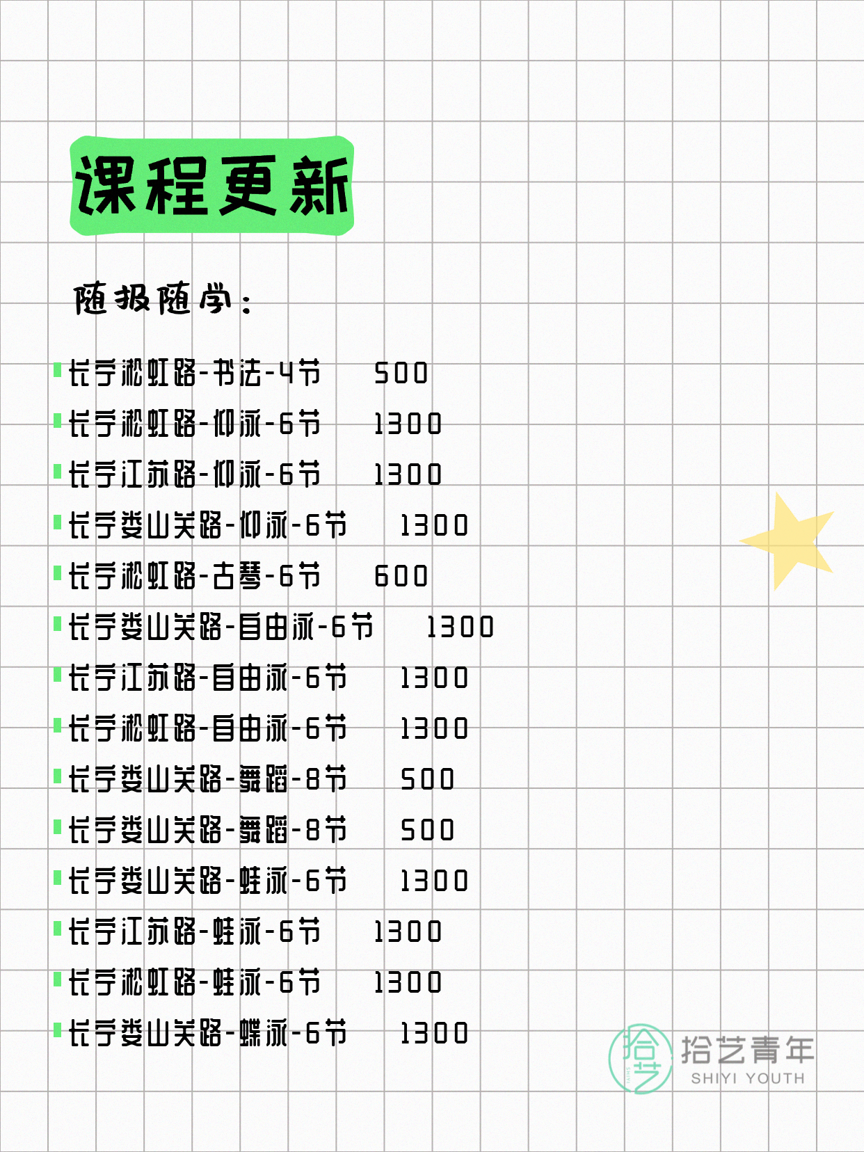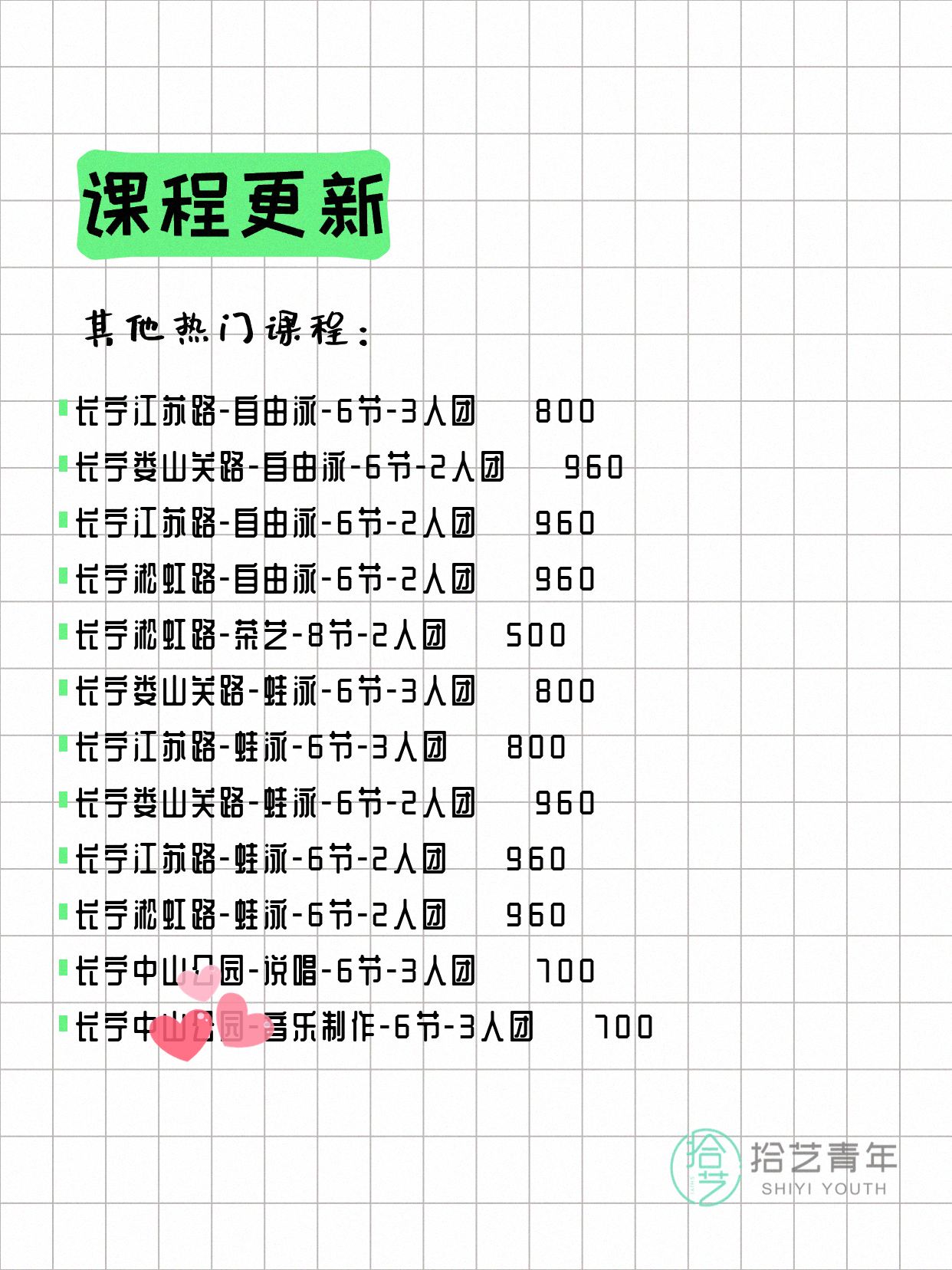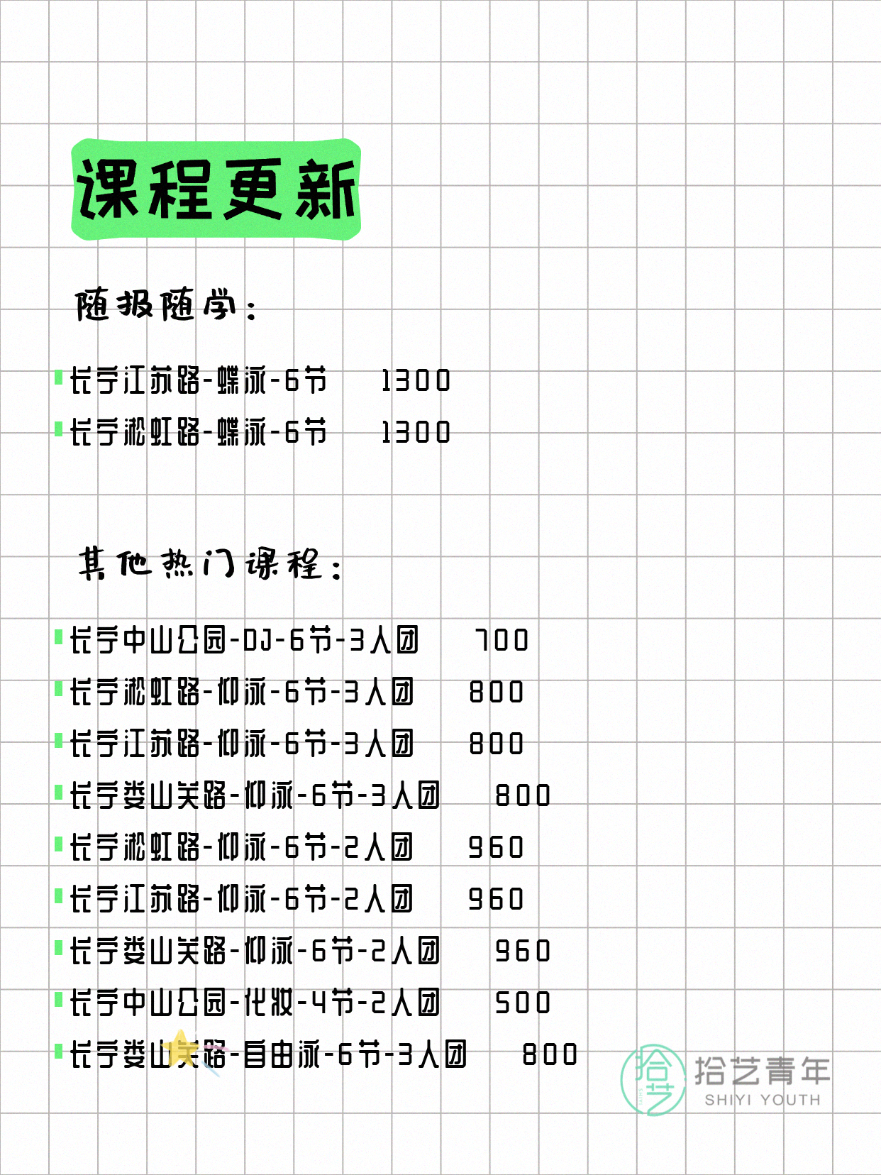 💡 提示:以上课程信息来自拾艺青年小程序,课程可能随报名动态变化,具体以小程序实时信息为准。