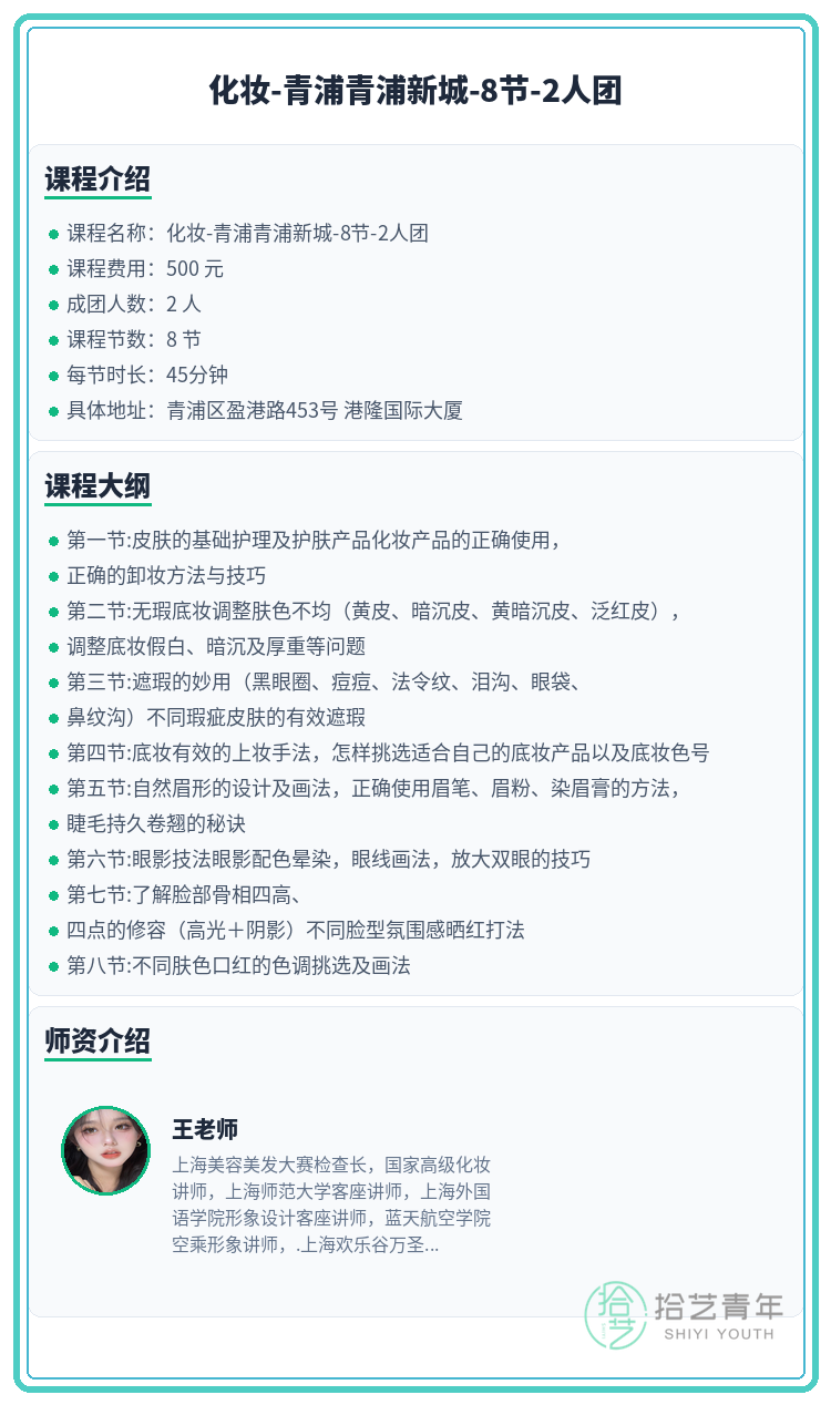 青浦化妆|就差你1个!青浦新城 - 拾艺青年夜校