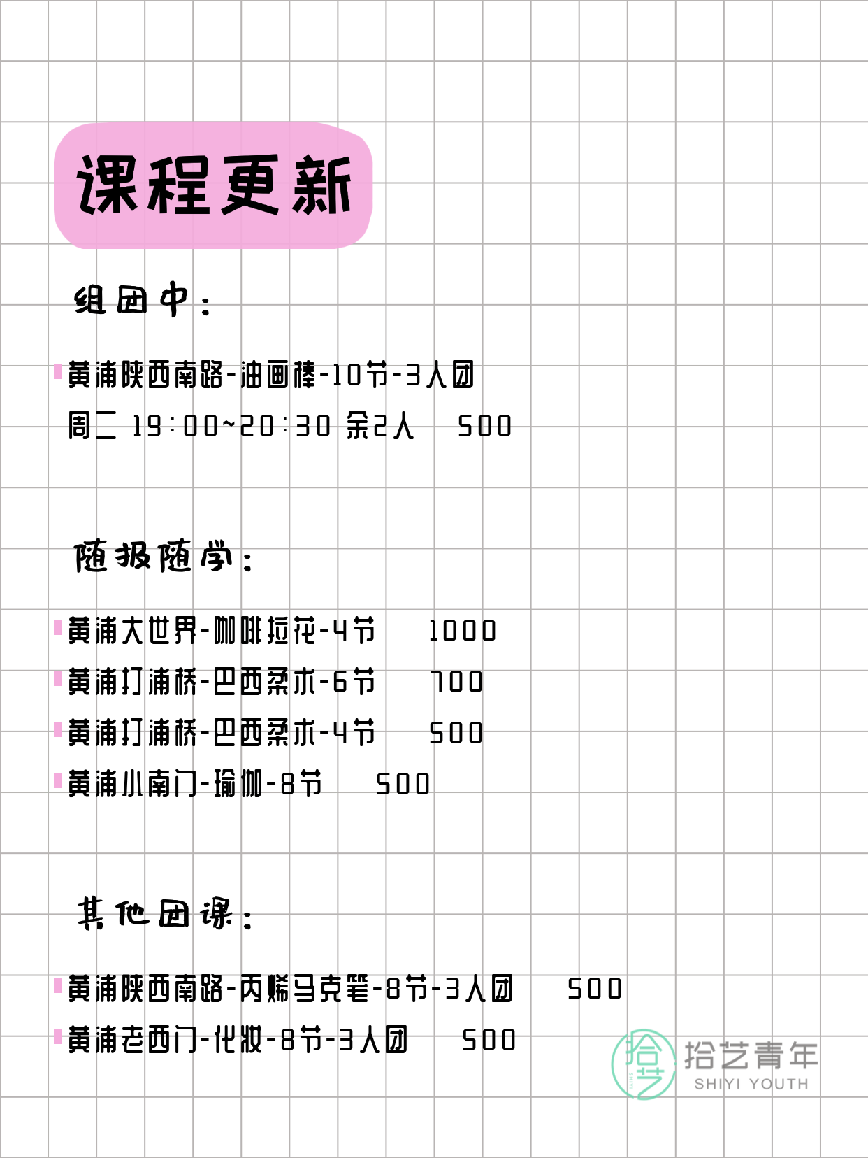 - 黄浦陕西南路-油画棒-10节-3人团 周二 19:00-20:30 余2人 💰 500