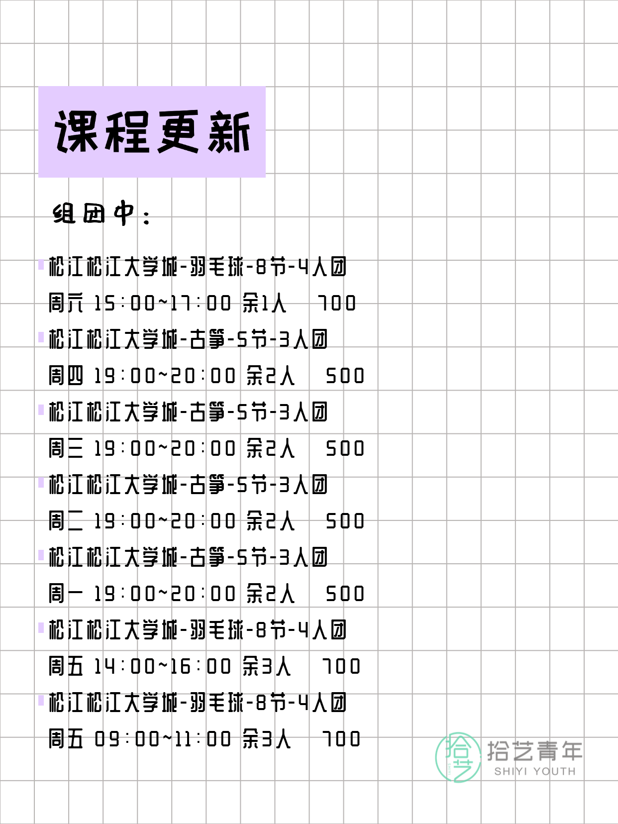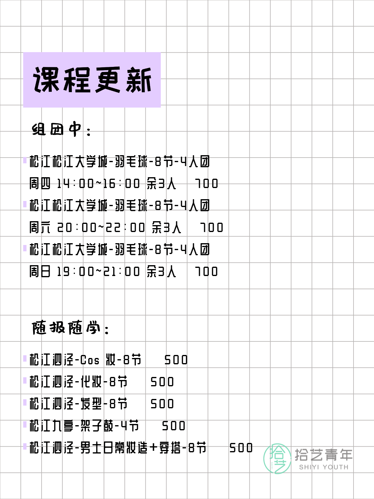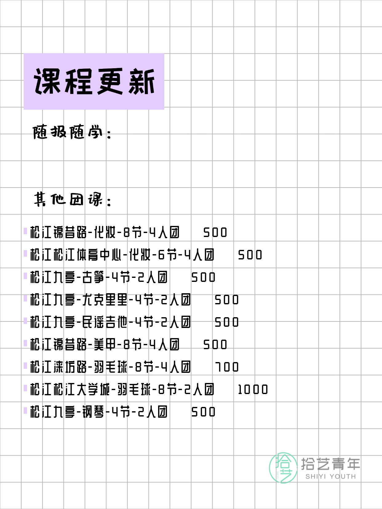 上海松江今日夜校课程更新 ↓