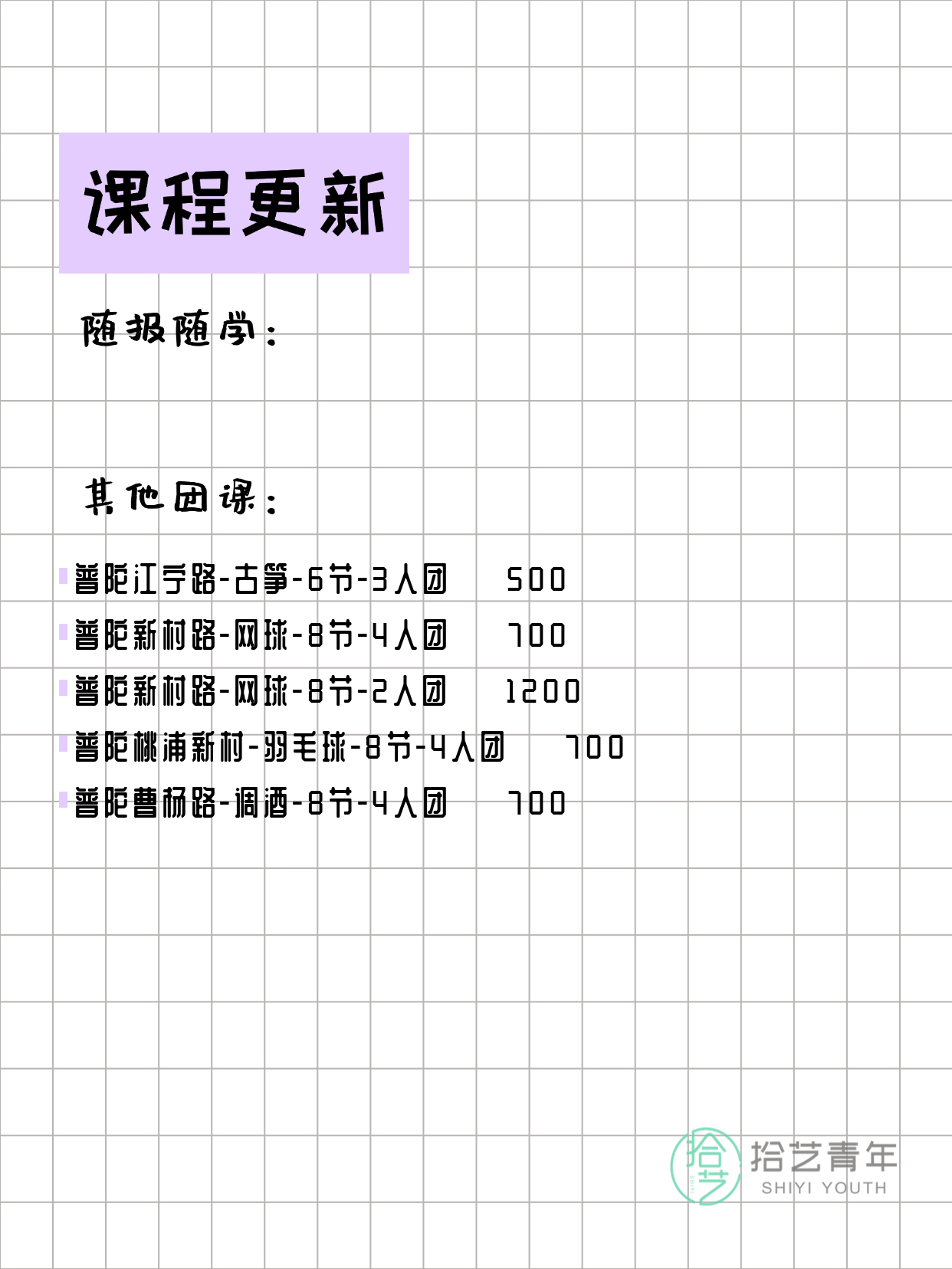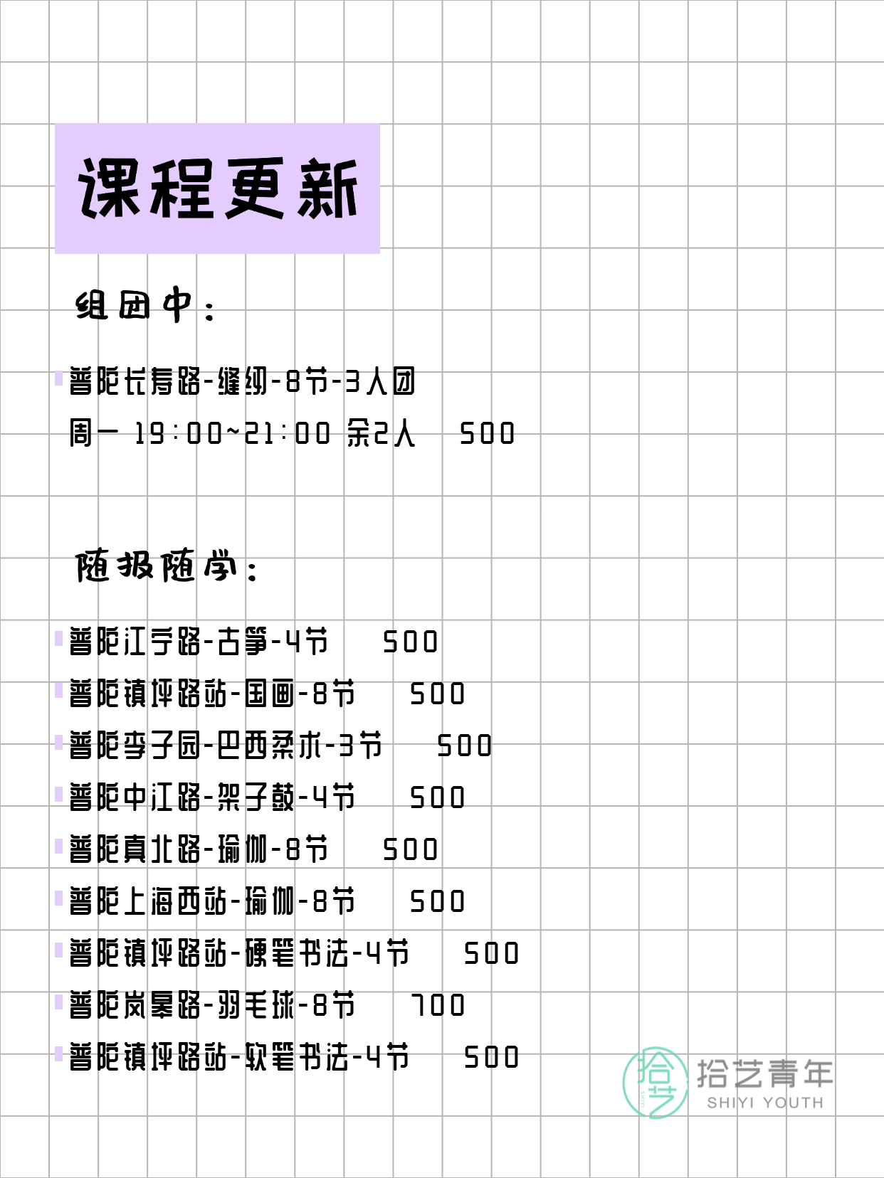 上海普陀夜校 3月10日 课程速览
