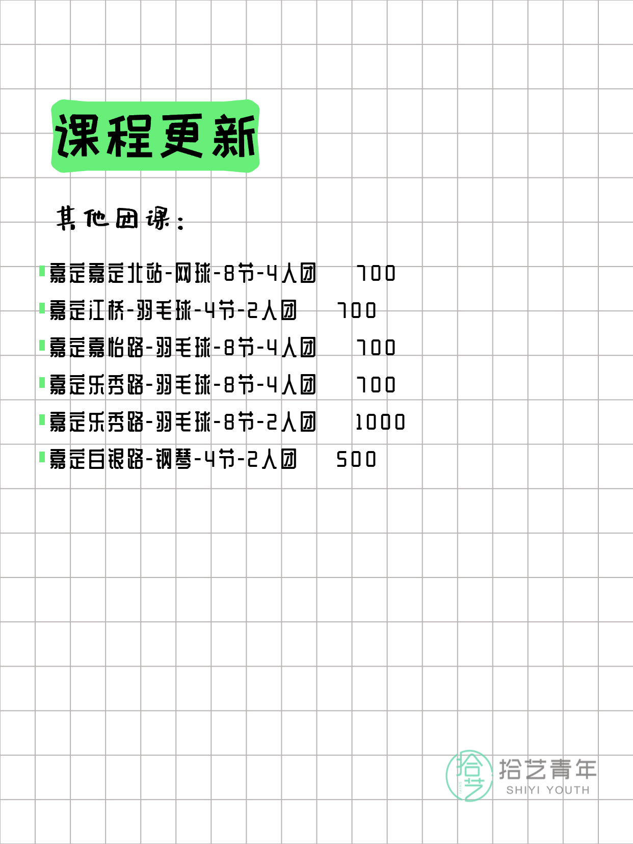 - 嘉定嘉定北站-网球-8节-4人团 💰 700
