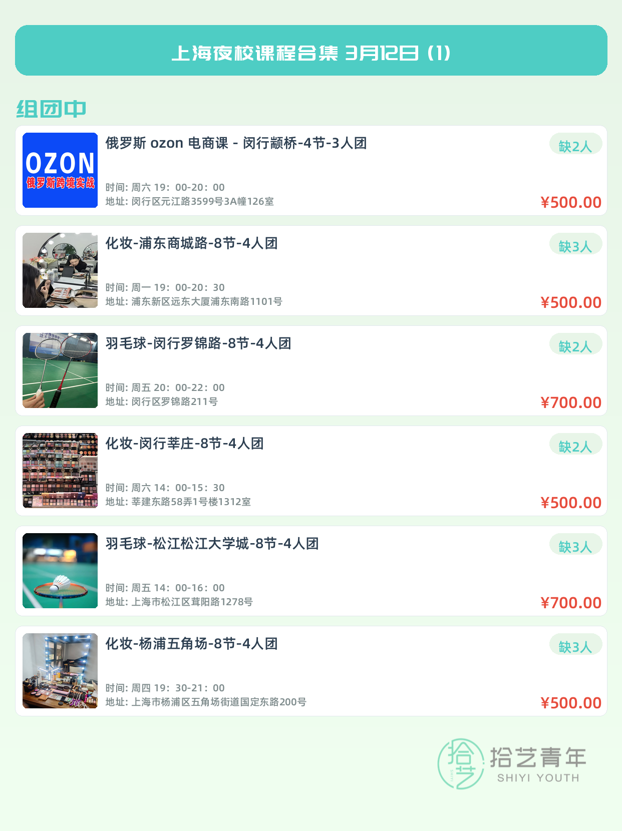 3月12日上海夜校课程合集