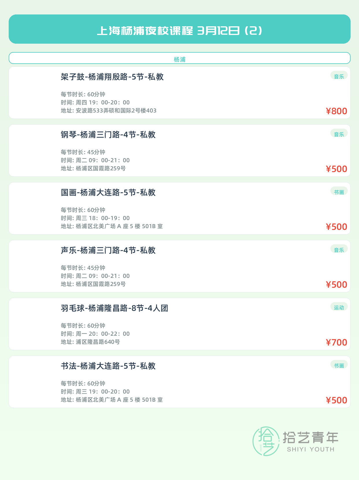 3月12日上海杨浦夜校课程合集