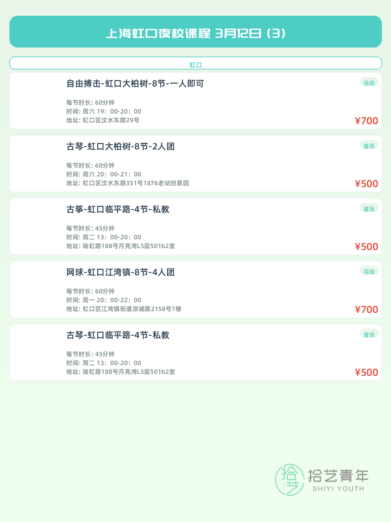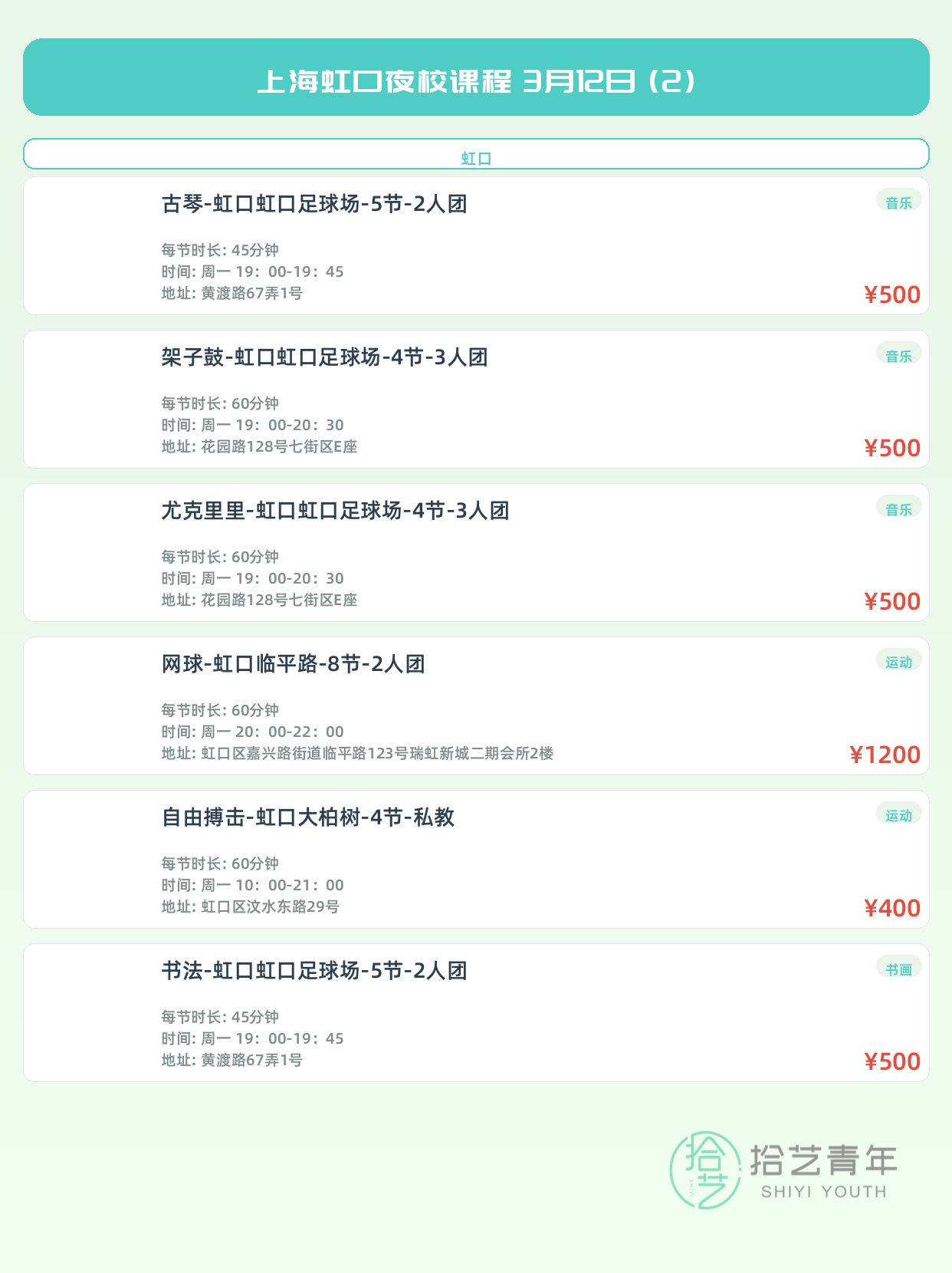 3月12日上海虹口夜校课程合集