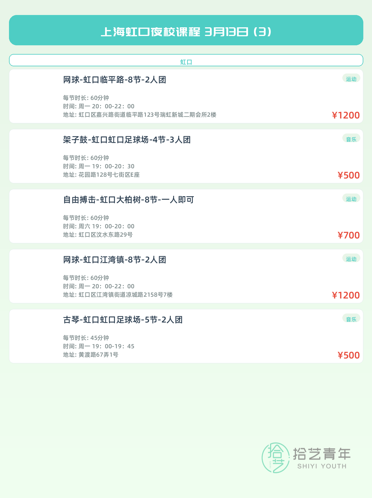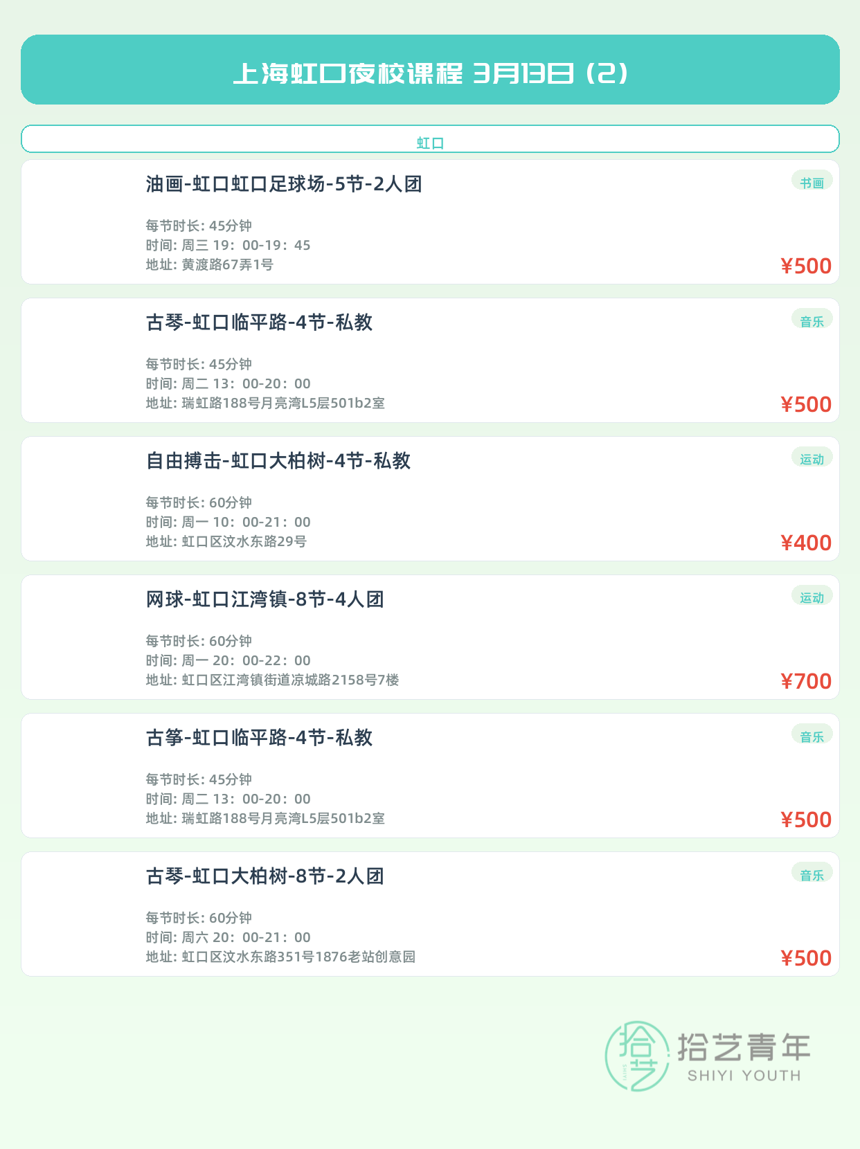 3月13日上海虹口夜校课程合集