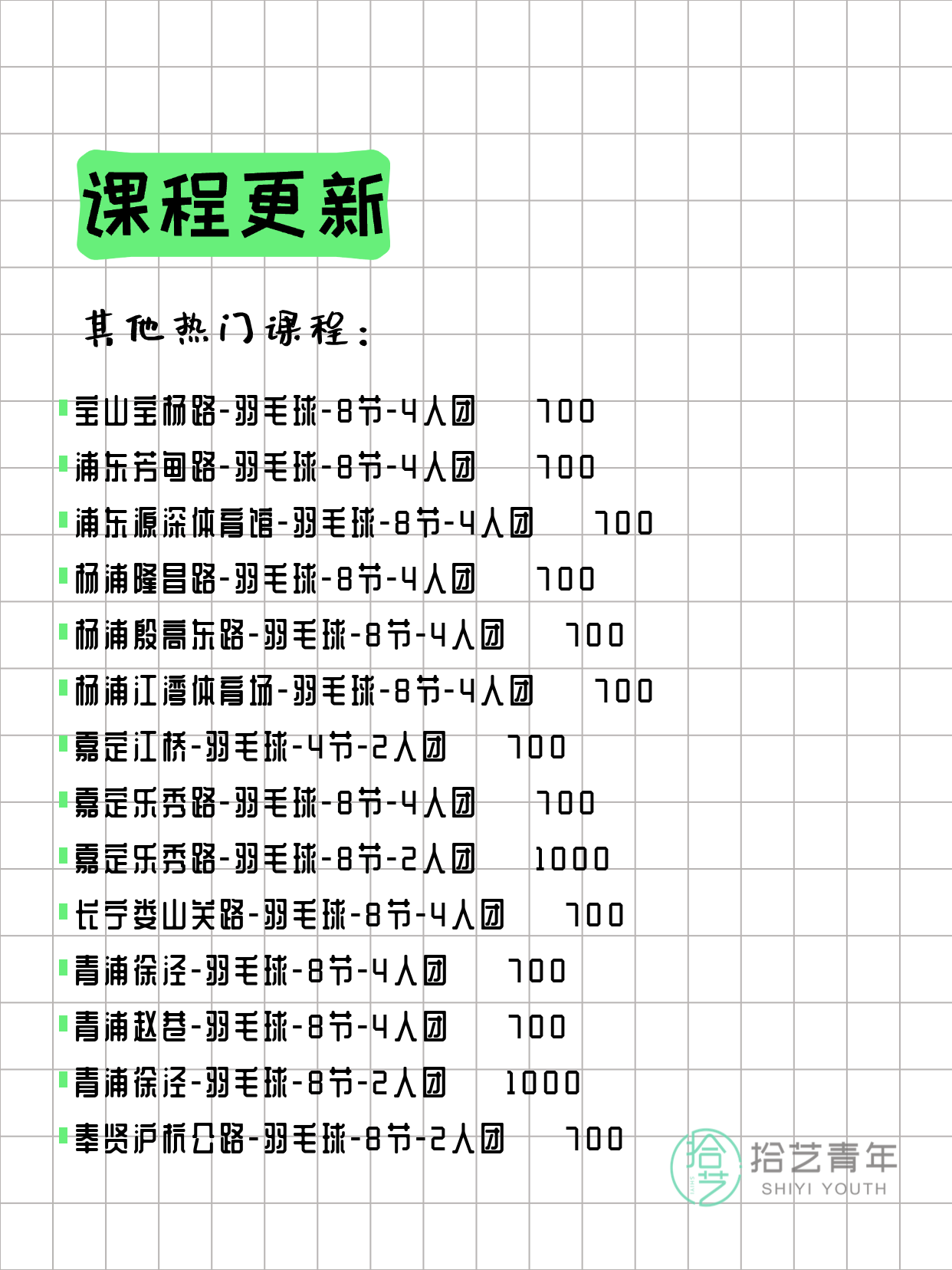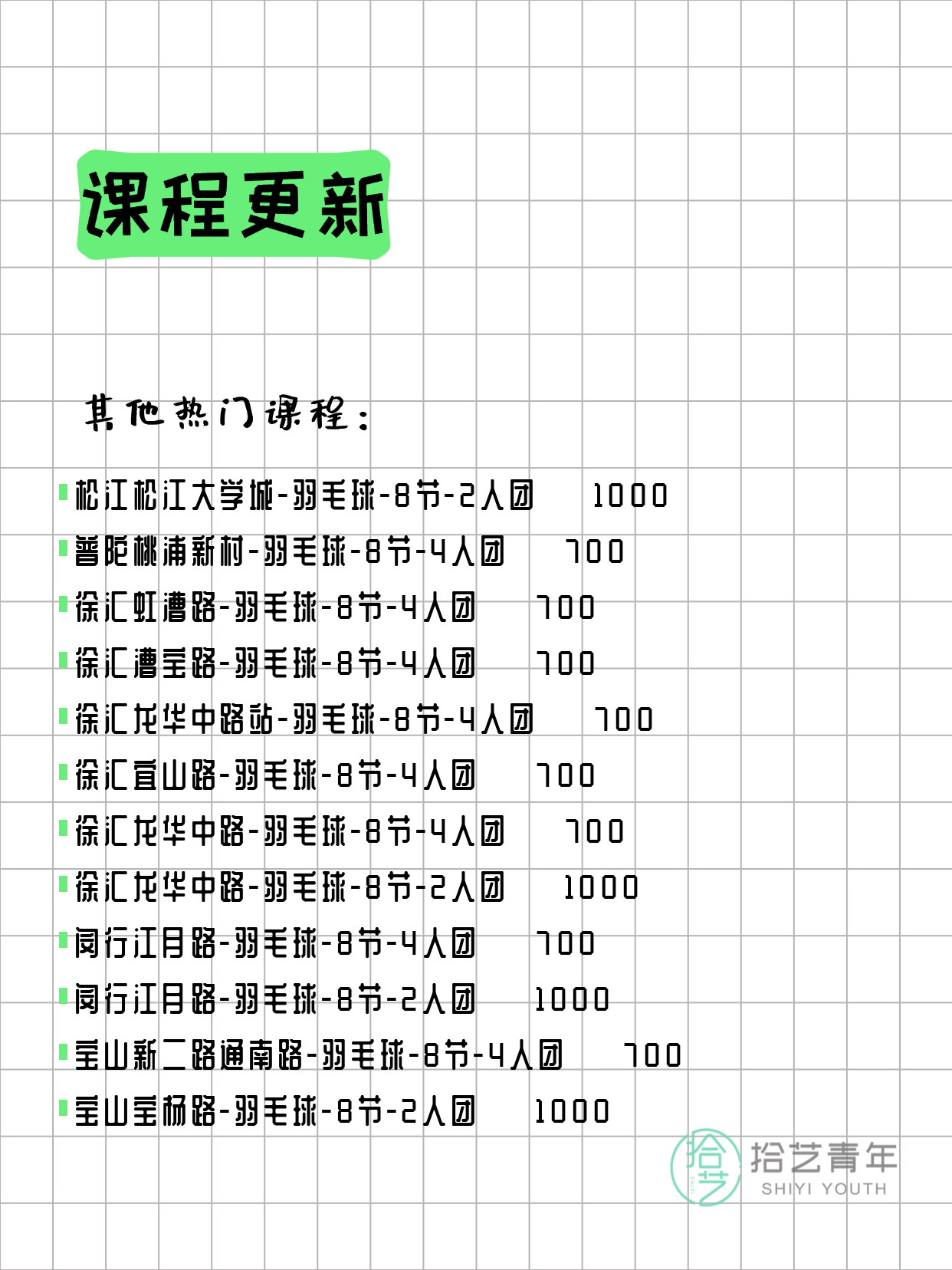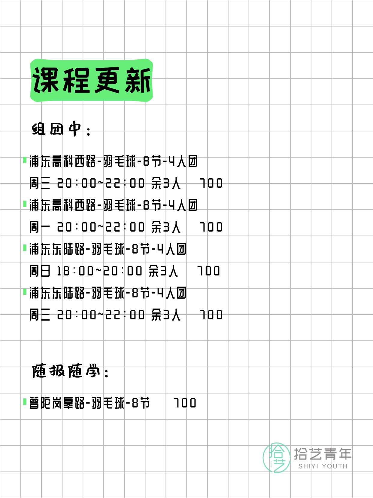 ⭐ 羽毛球-宝山宝杨路-8节-4人团