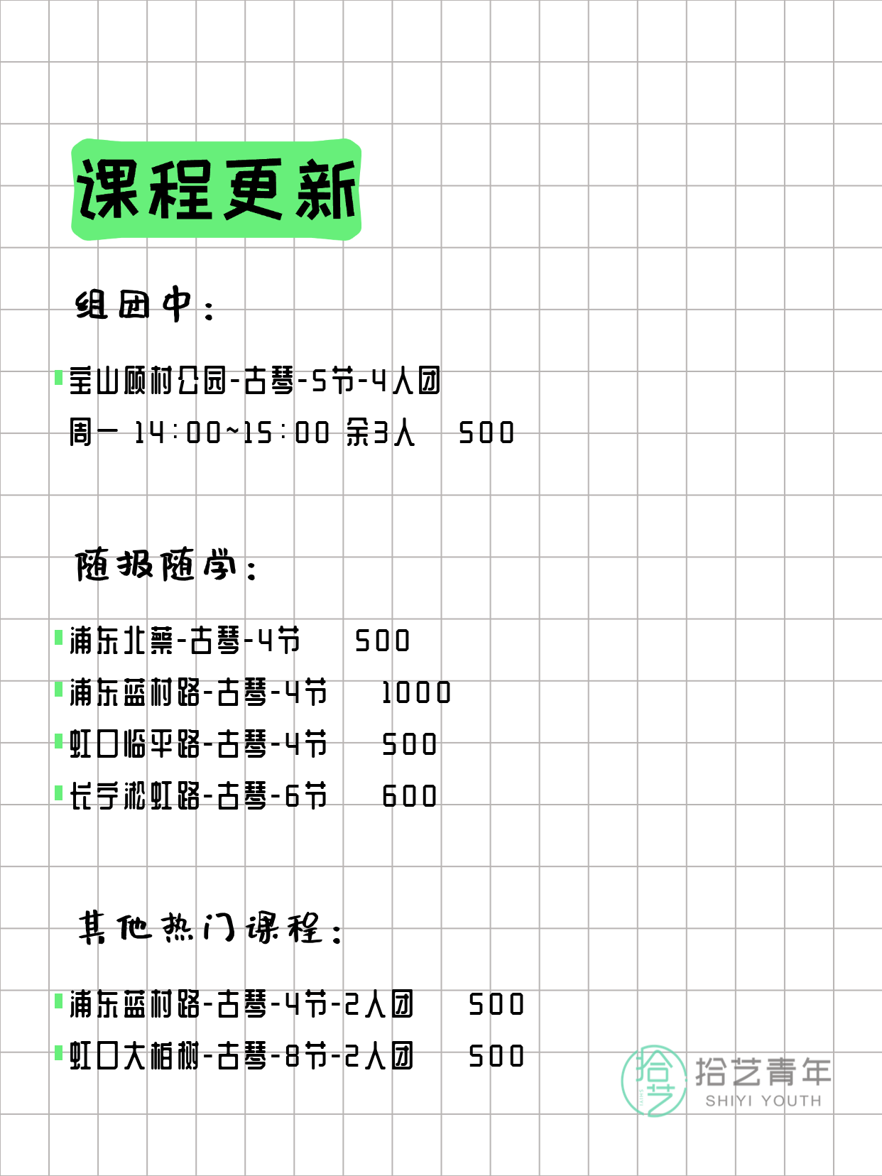 🔥 古琴-宝山顾村公园-5节-4人团 周一 14:00-15:00 余3人