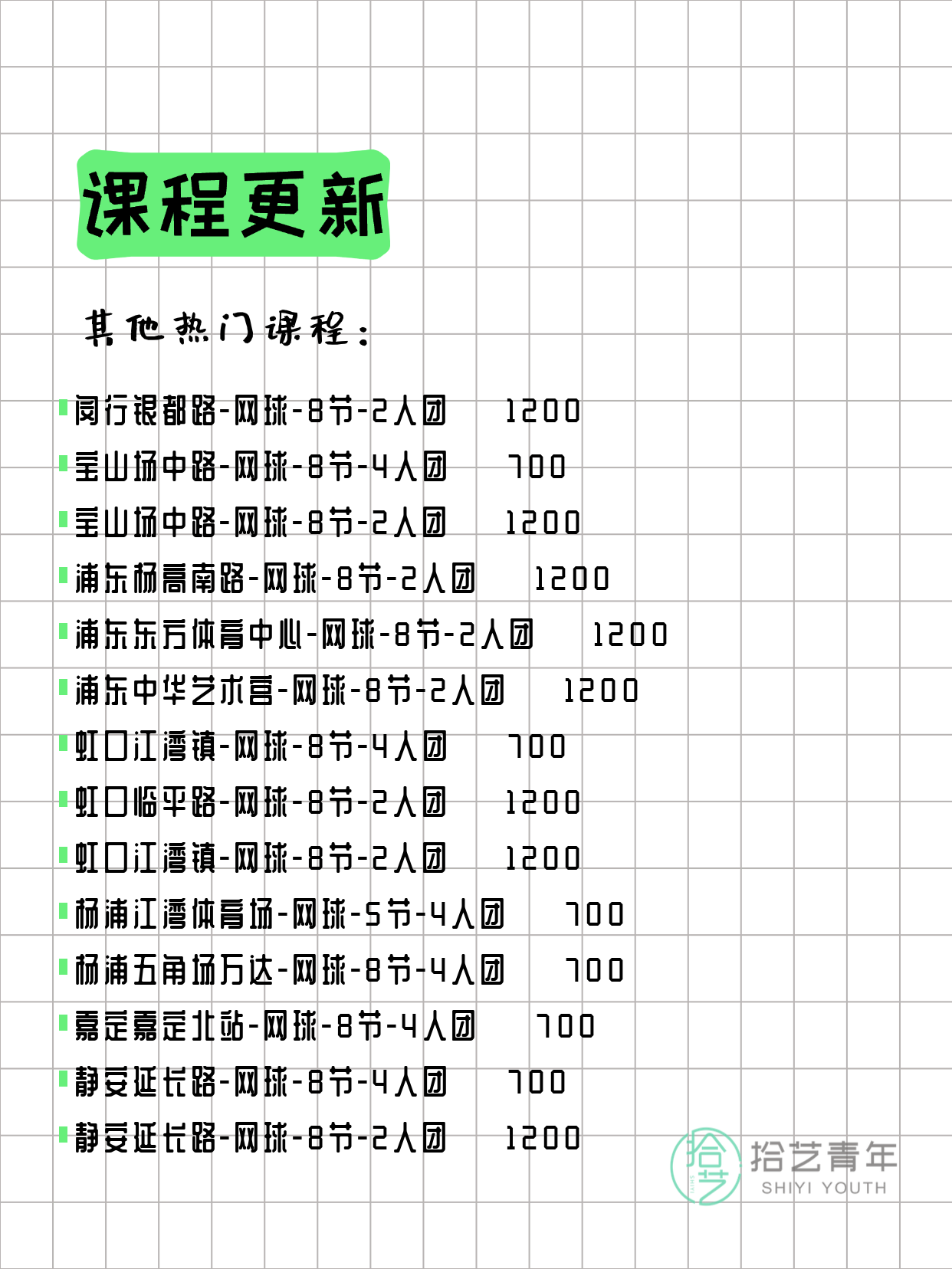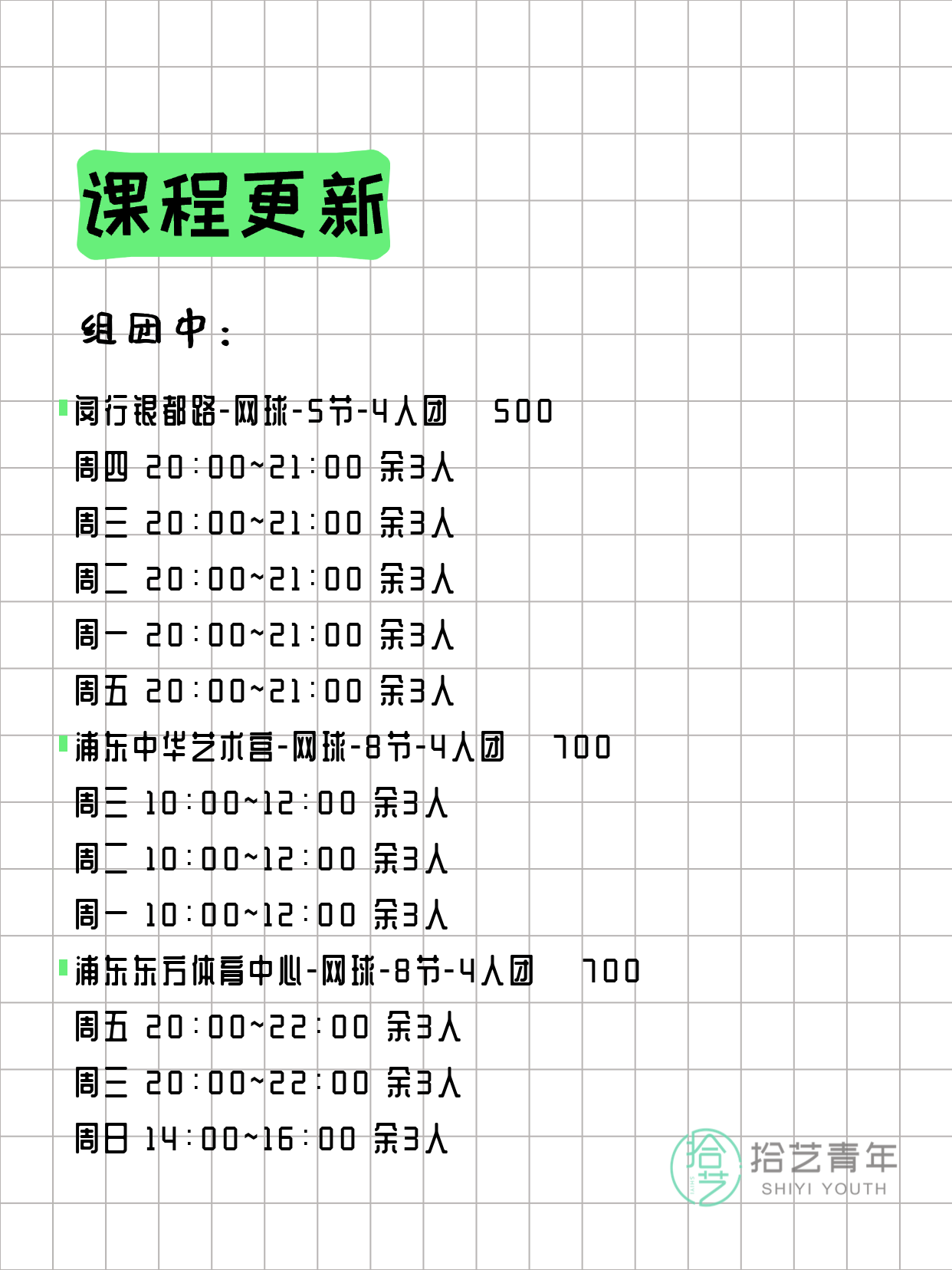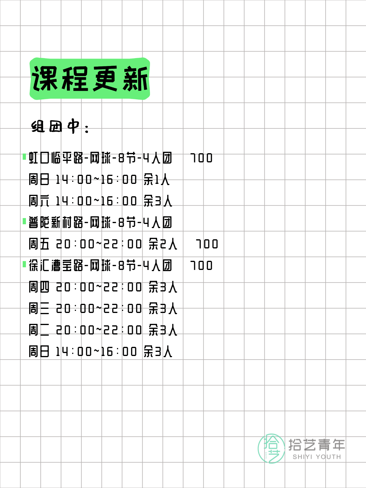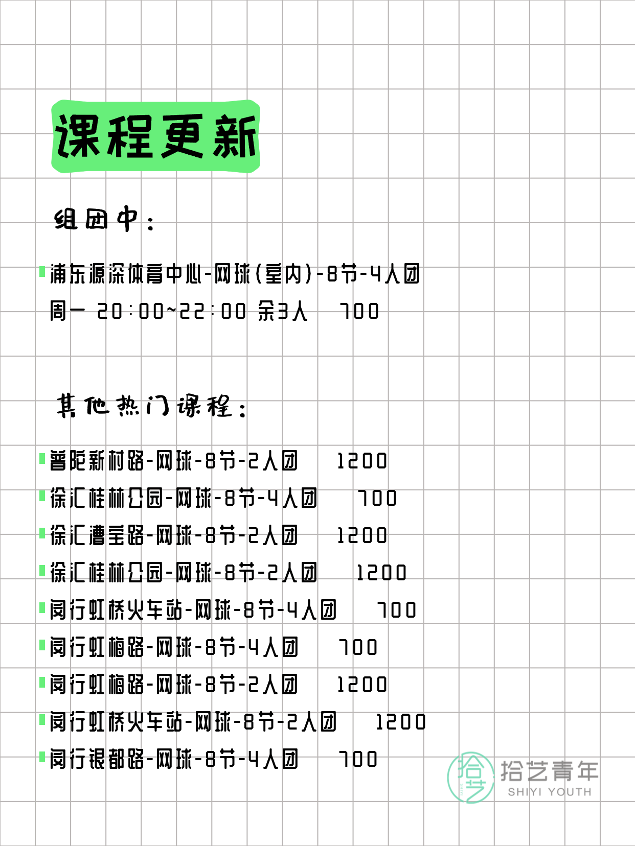🔥 网球-普陀新村路-8节-4人团 💰700