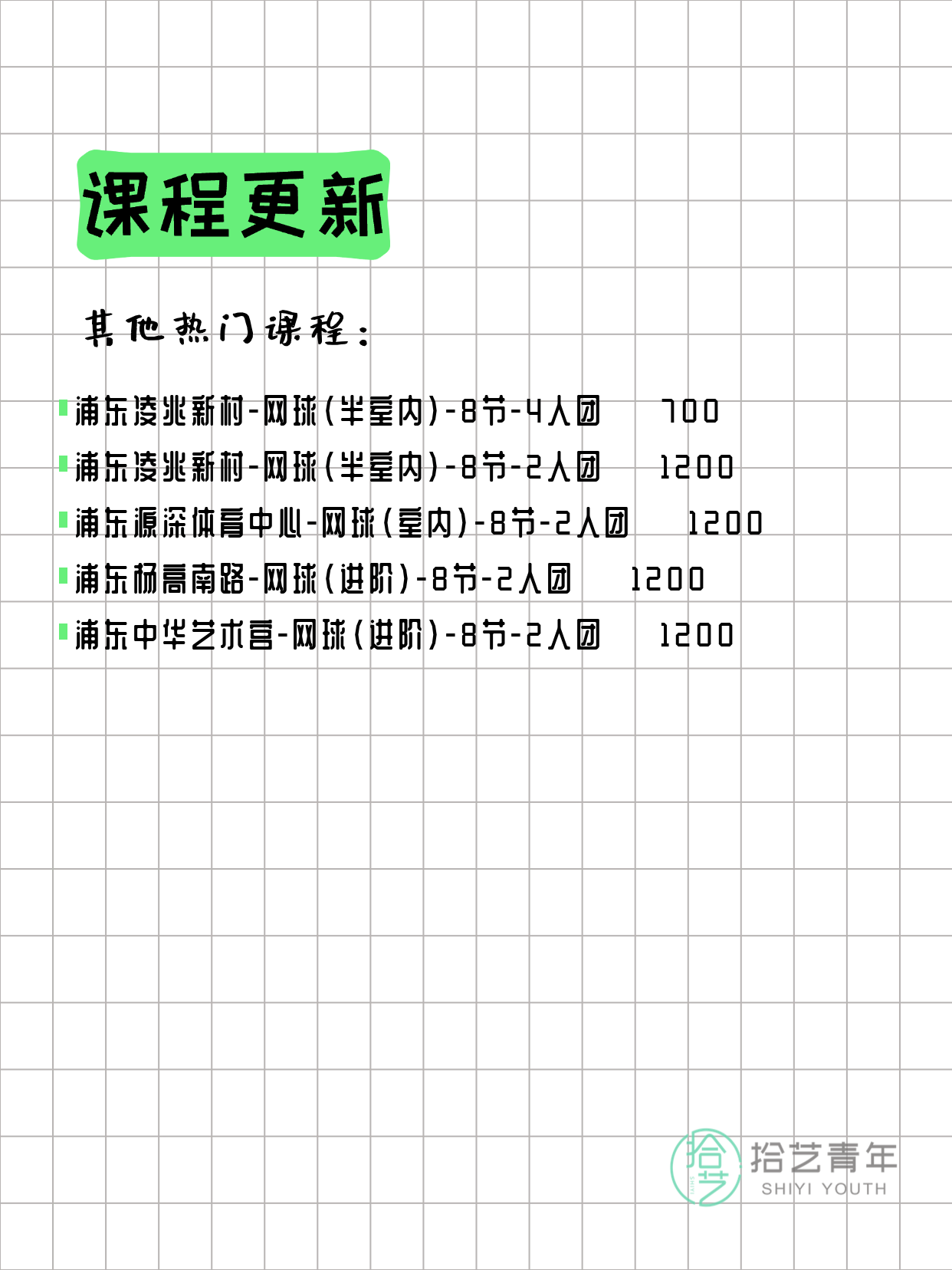 💡 提示:以上课程信息来自拾艺青年小程序,课程可能随报名动态变化,具体以小程序实时信息为准。